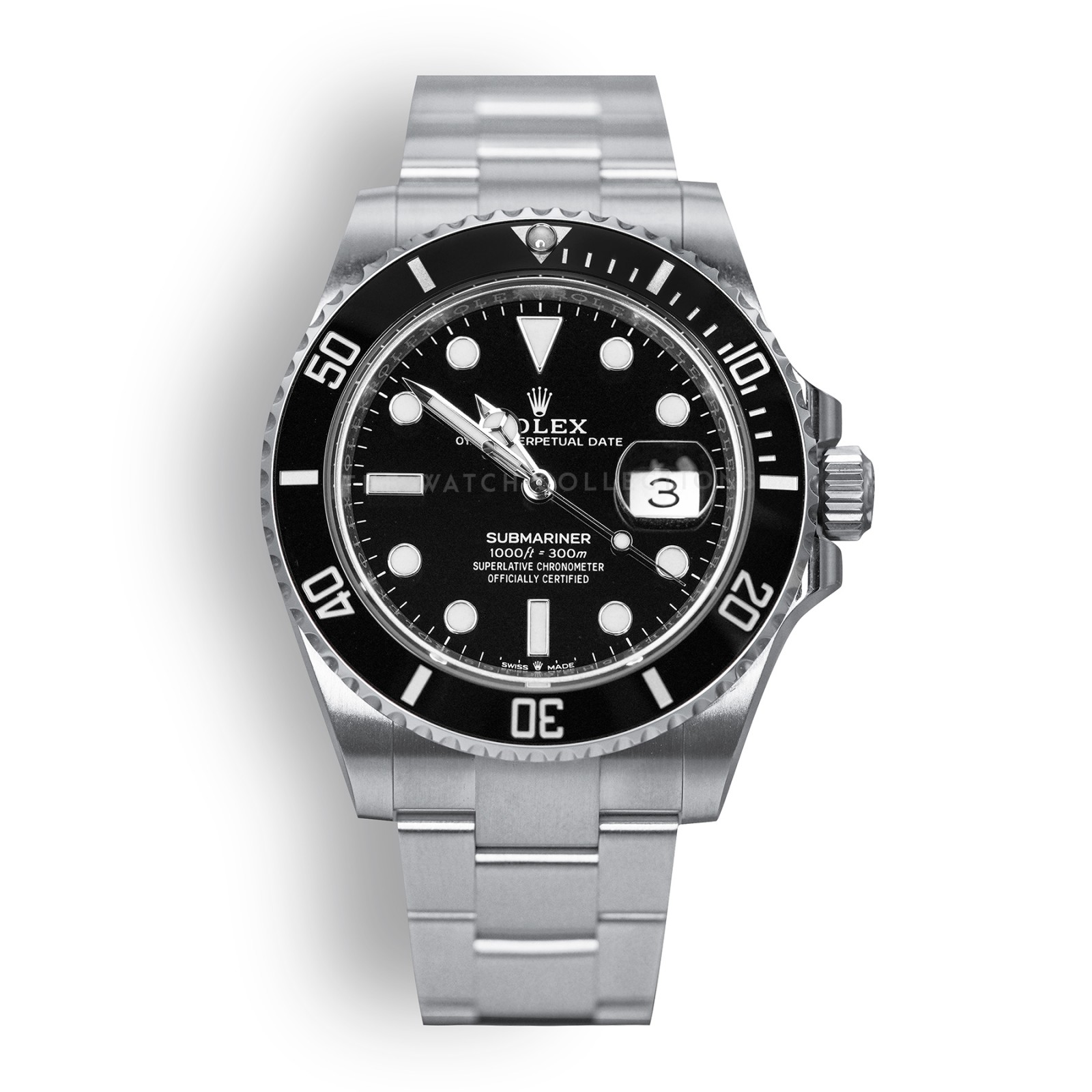 The Rolex Submariner Date 126610LN showcases the iconic design with a black dial and black ceramic bezel, paired with a 41mm stainless steel case. Water-resistant up to 300 meters, it is ideal for diving or daily wear, combining reliability with the classic Submariner style.