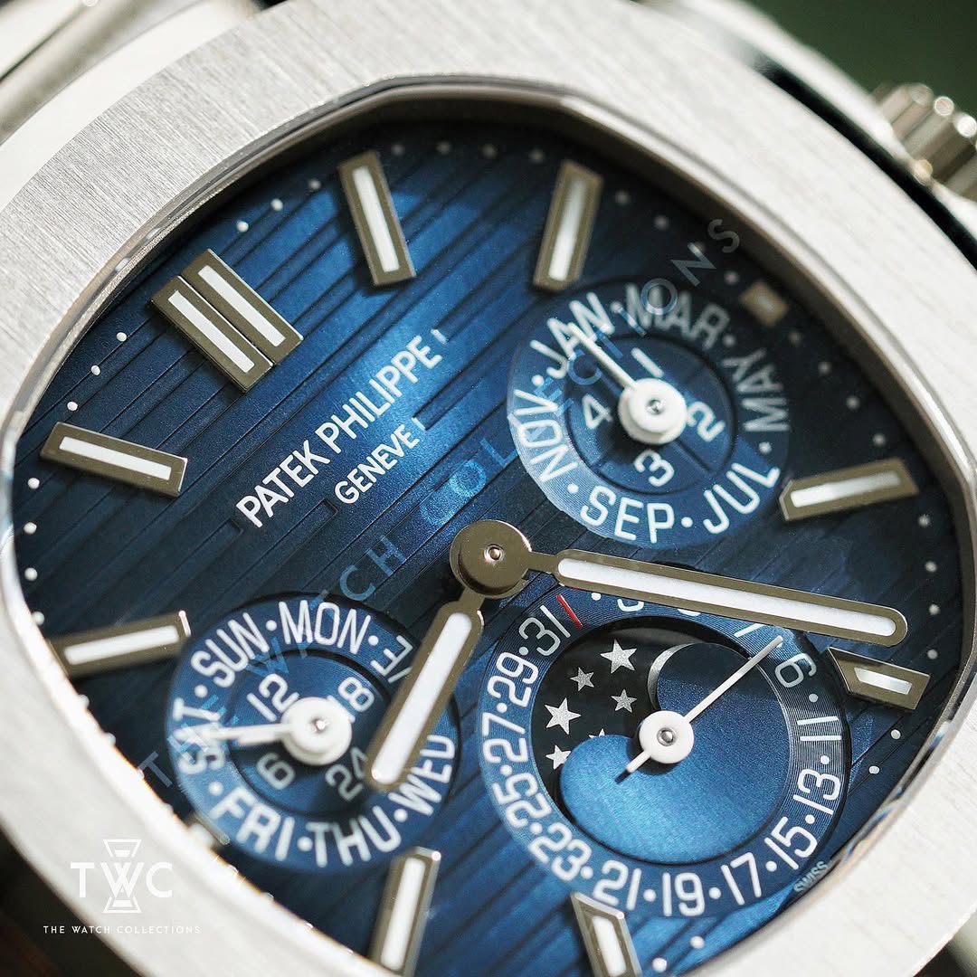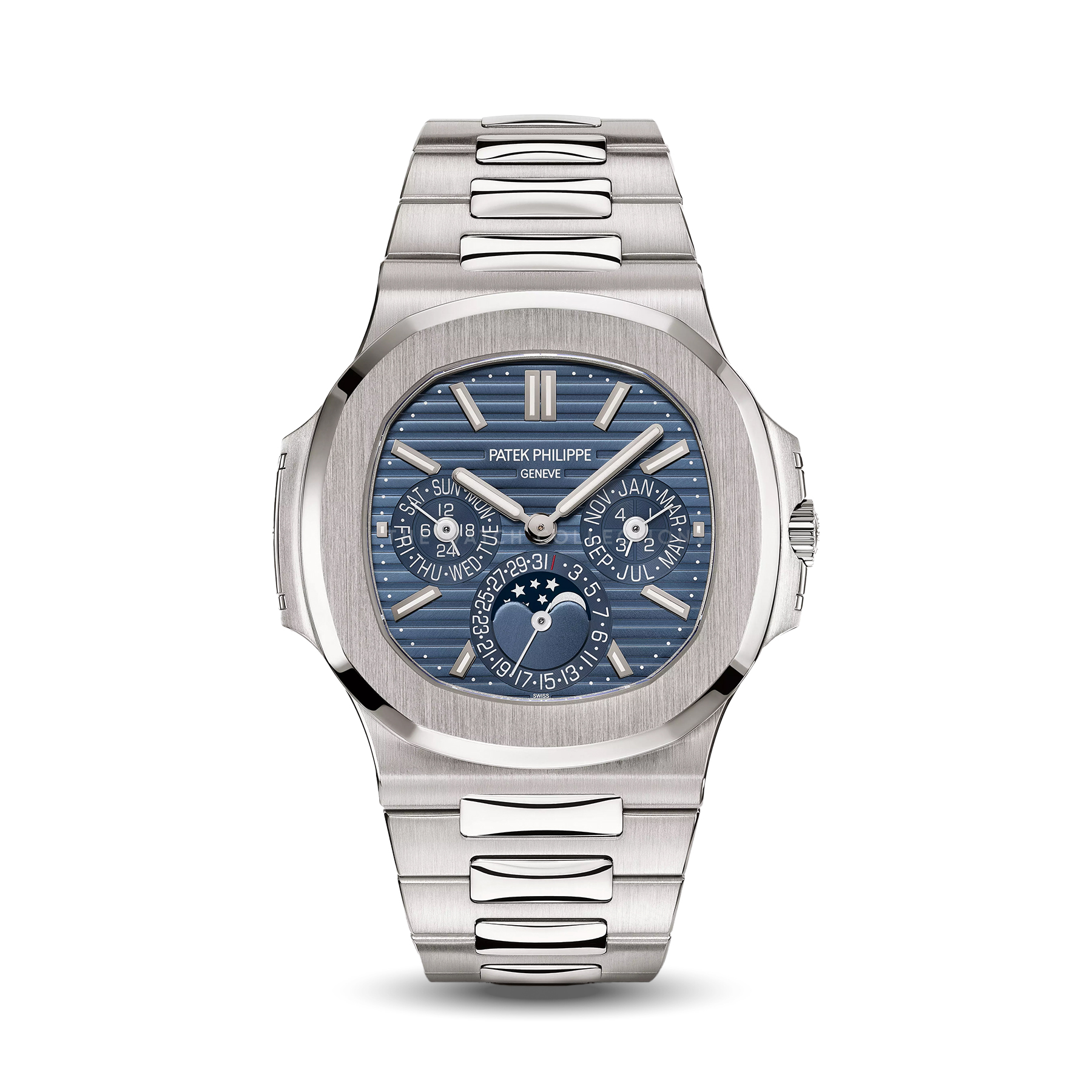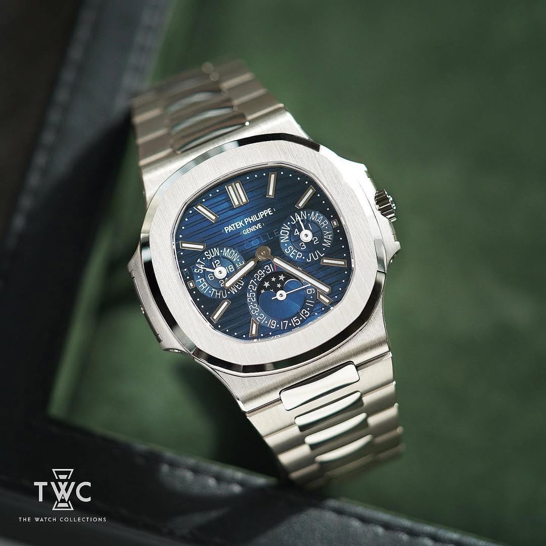 The Patek Philippe Nautilus 5740/1G features a white gold case with blue dial and perpetual calendar. Elegant, complex, and perfect for prestigious collections.
