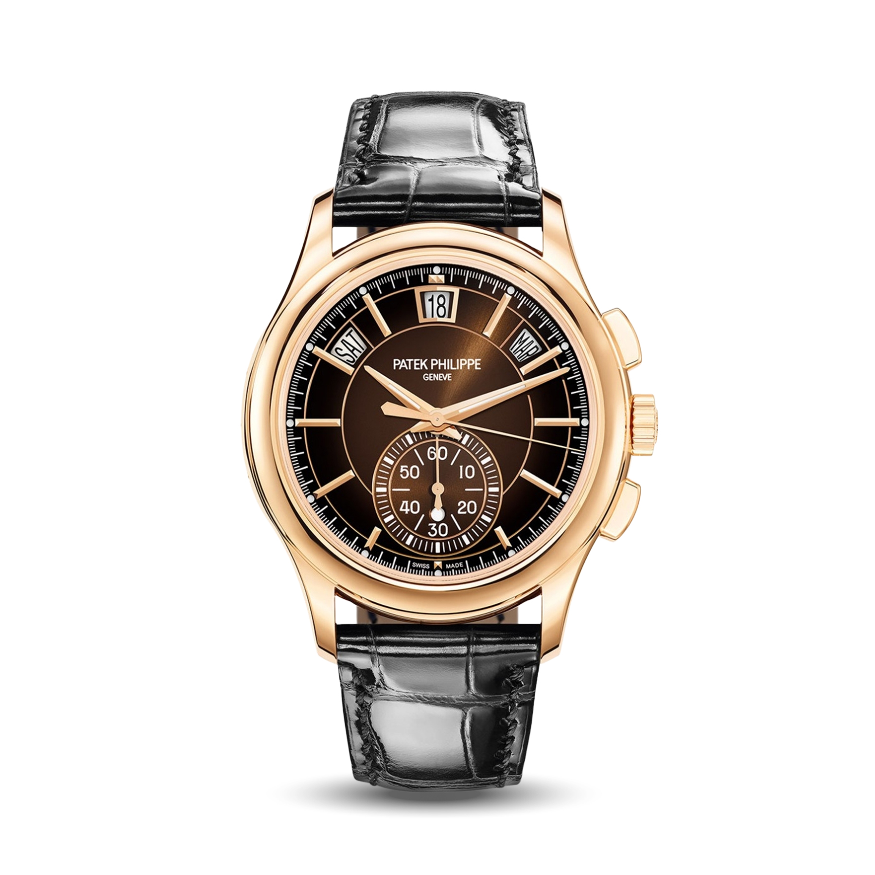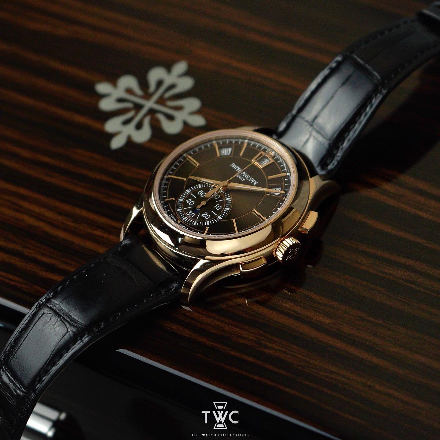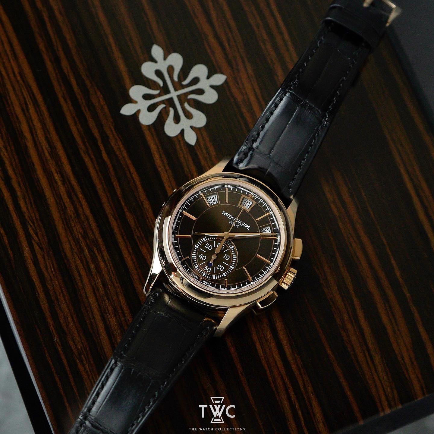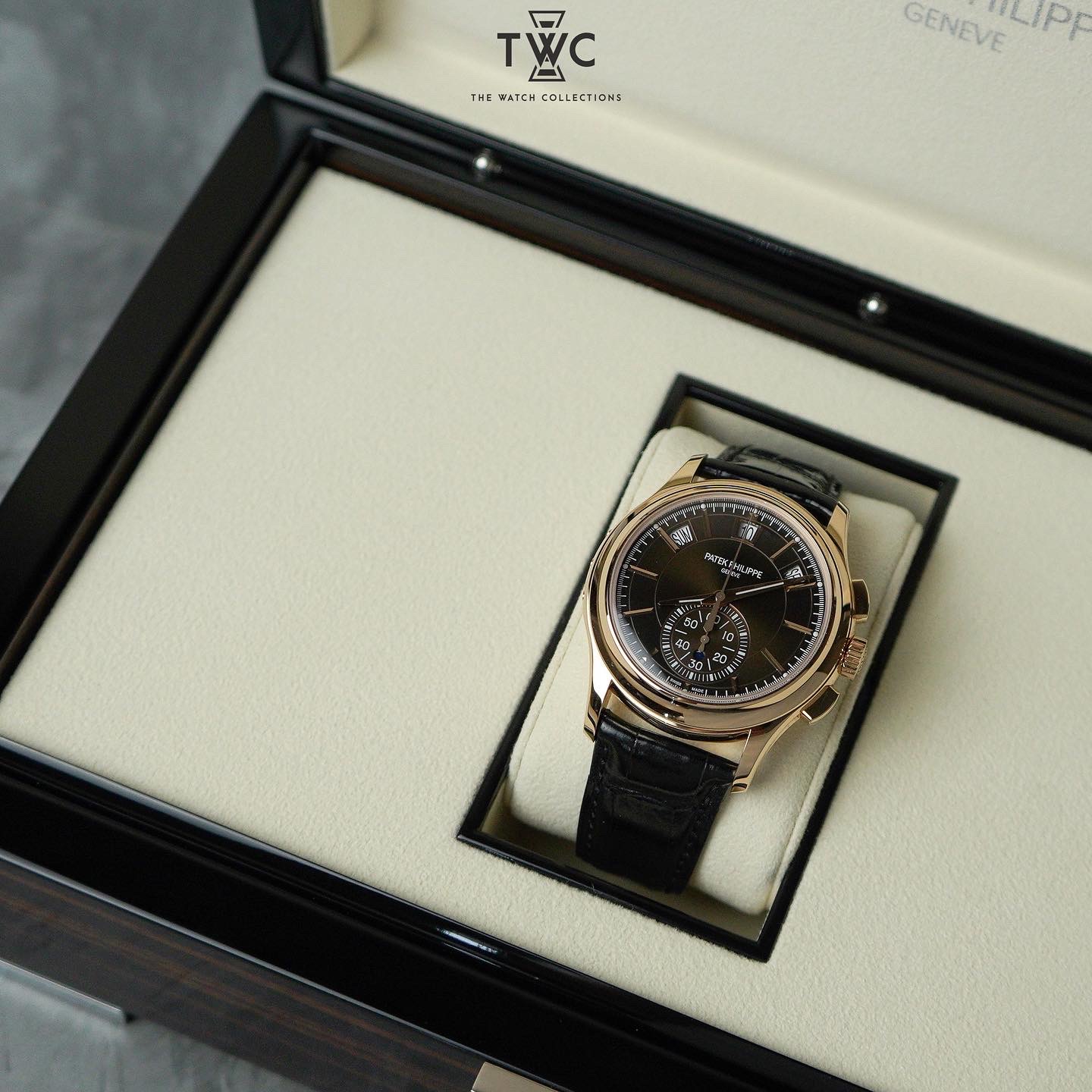 The Patek Philippe 5905R perfectly combines a chronograph and annual calendar in an elegant rose gold case. Ideal for collectors who appreciate luxury and high-precision watchmaking.