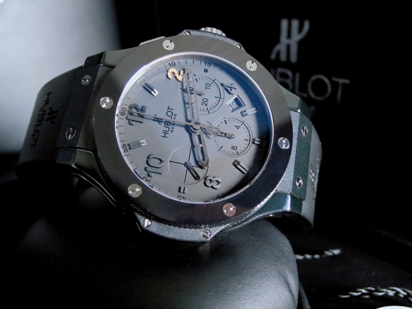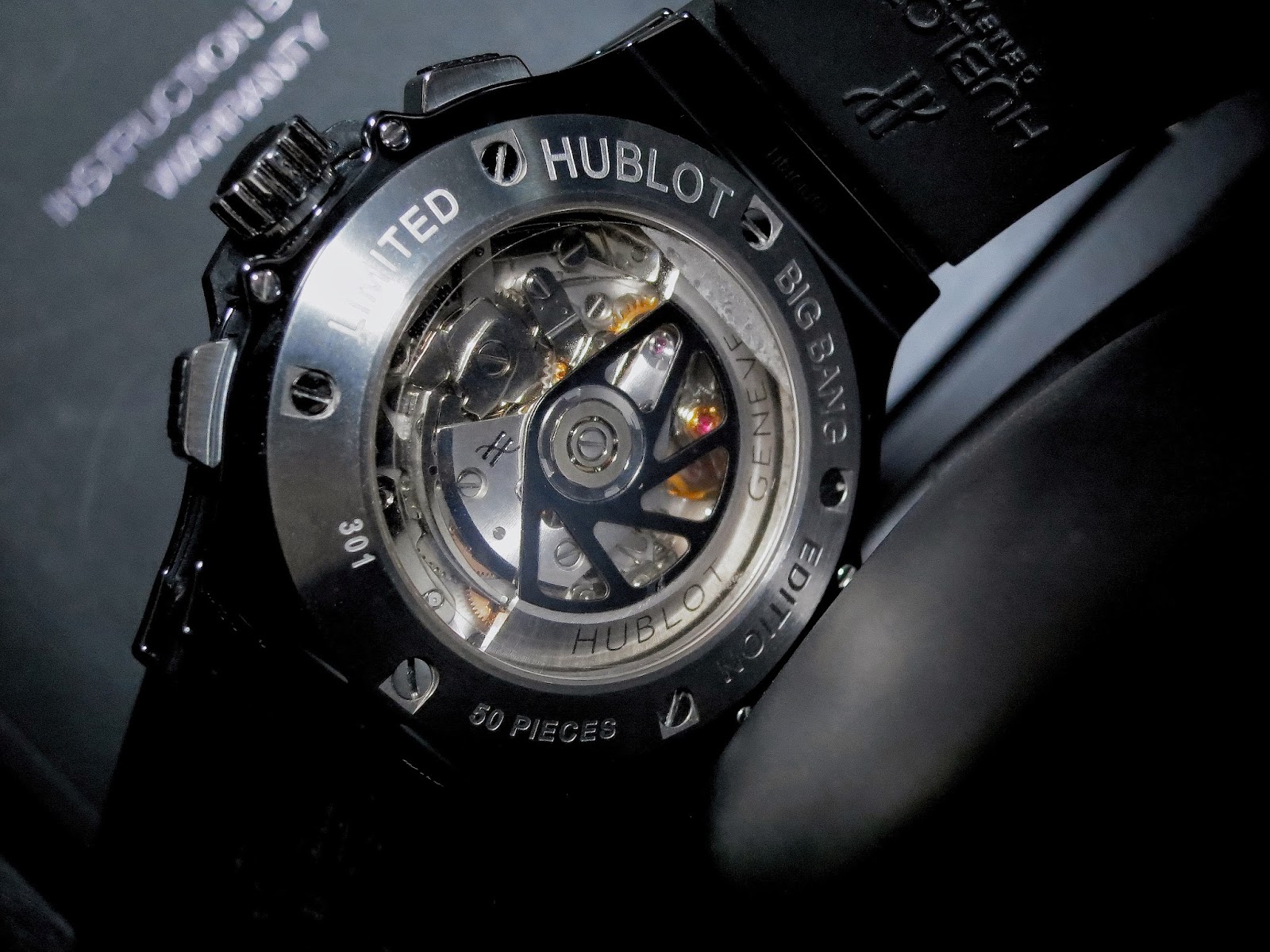 The Hublot Big Bang All Black Tempus Ceramic features a black case with skeleton dial and rubber strap. Modern, sporty, and highlights contemporary design.