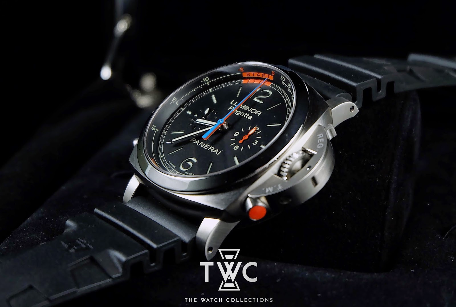 The Panerai Luminor 1950 Regatta Flyback Chrono Titano PAM 526 is a professional-grade sports watch designed specifically for sailing and regatta timing. Its 47mm titanium case offers strength with reduced weight, paired with a highly legible black dial and Panerai’s signature flyback chronograph function. Powered by an in-house automatic movement with a three-day power reserve, this limited edition model delivers strong technical character and excellent collectibility.