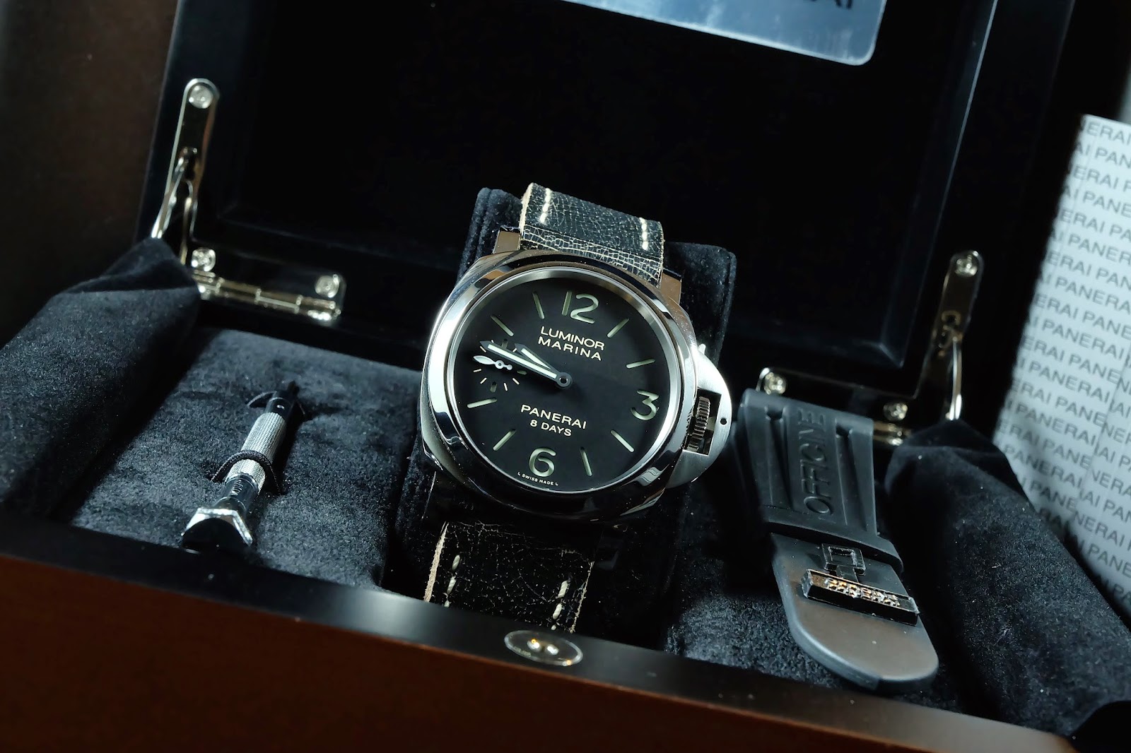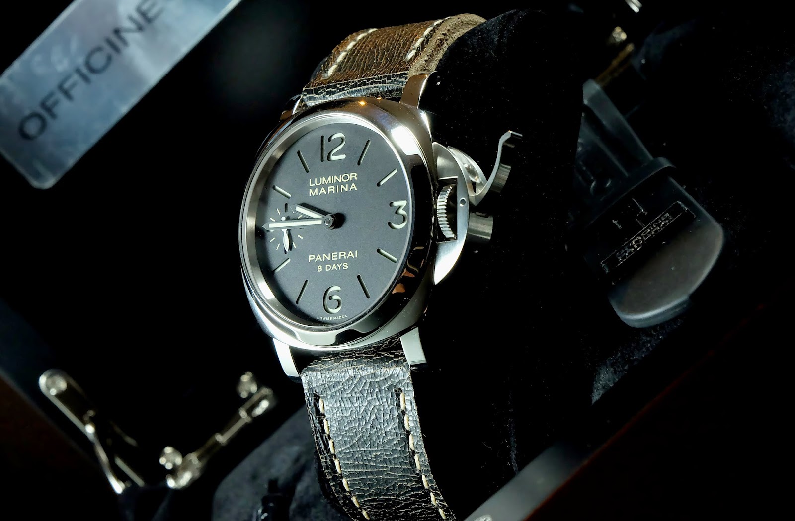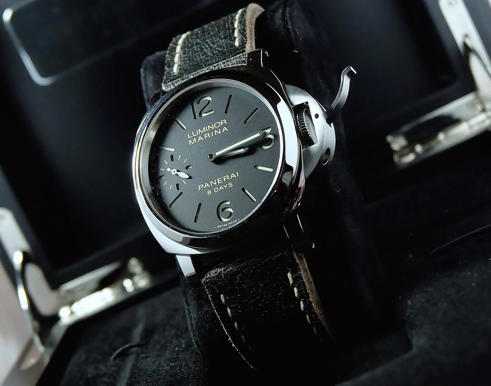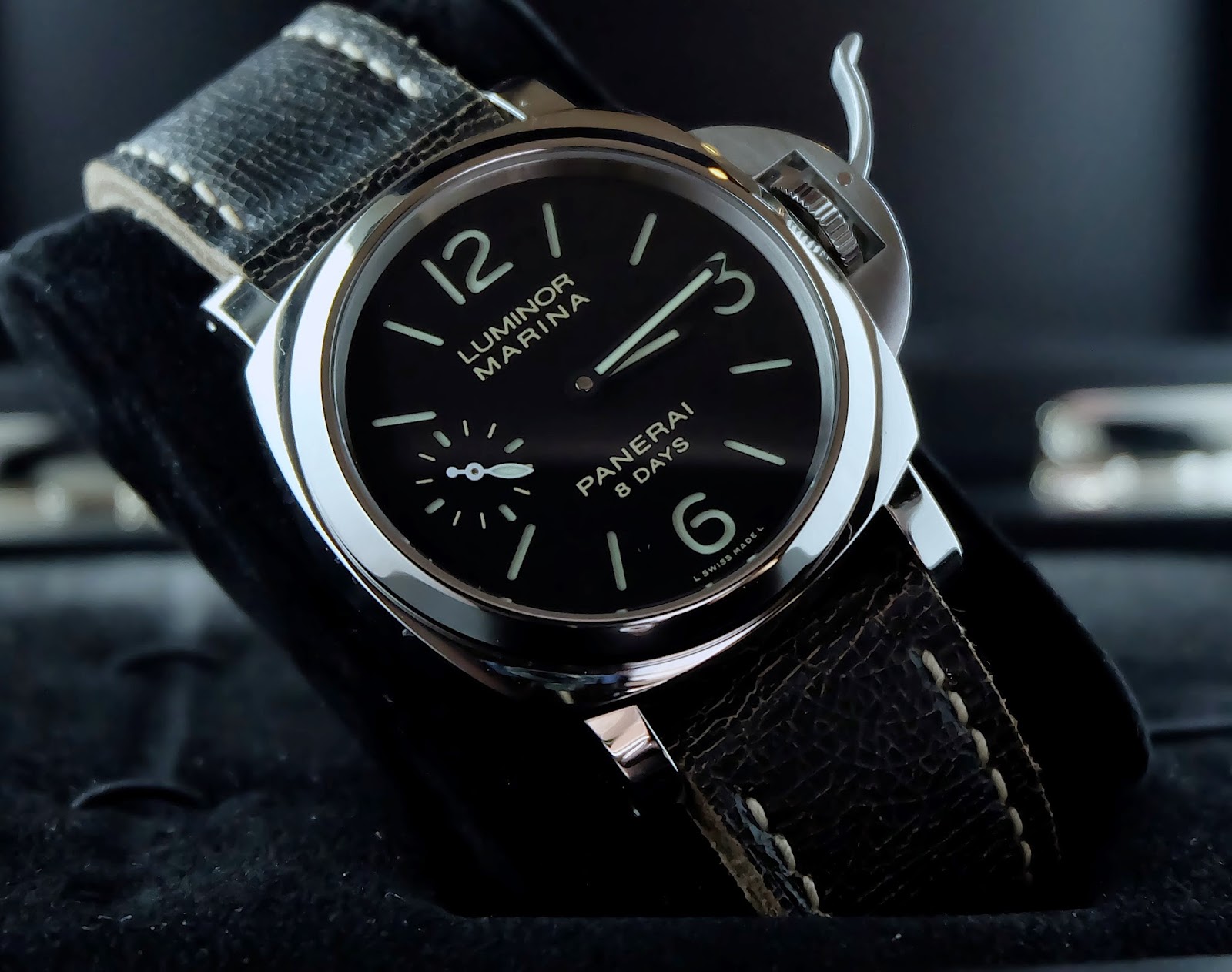 The Panerai Luminor Marina PAM 510 features a stainless steel case with black dial and 8-day power reserve. Masculine and classic.