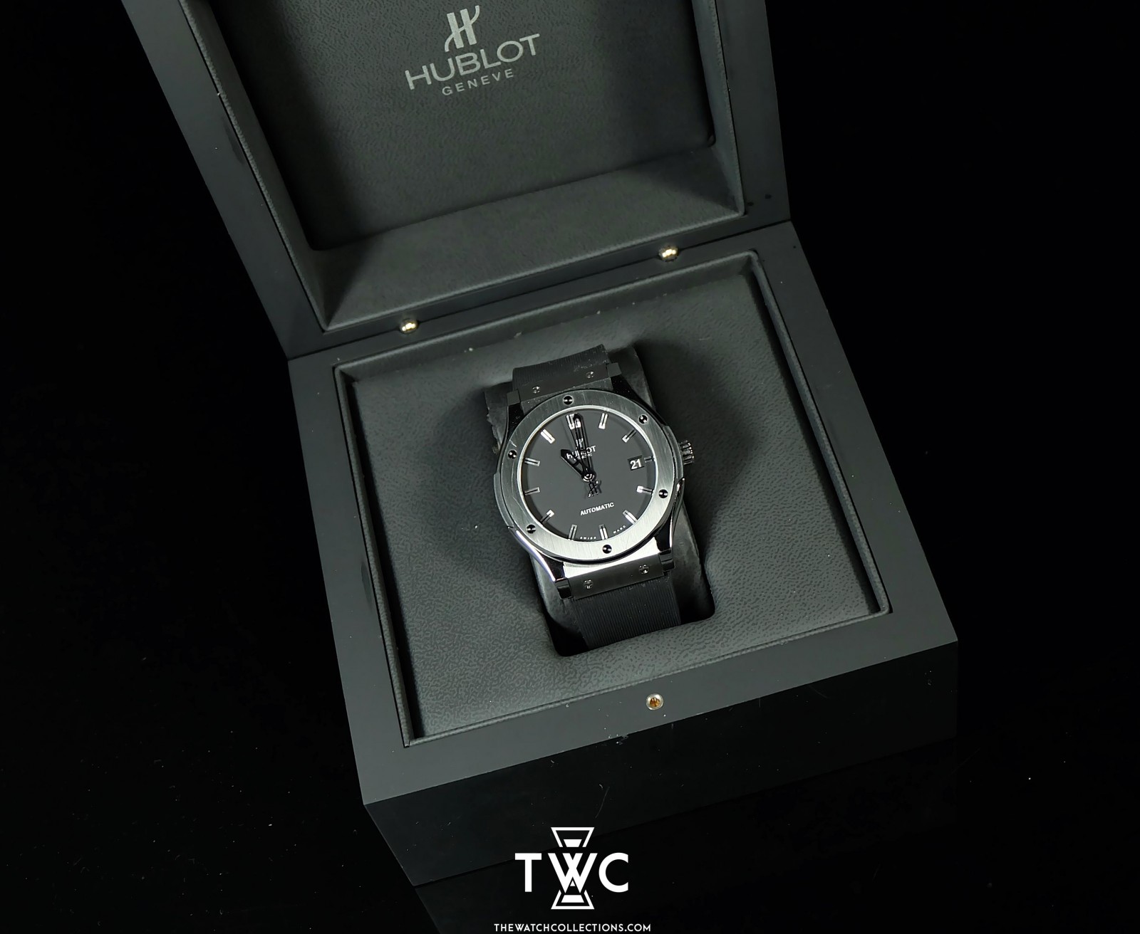 The Hublot Classic Fusion Titanium features a titanium case with minimalist dial and leather strap. Elegant, lightweight, and suitable for both formal and casual style.