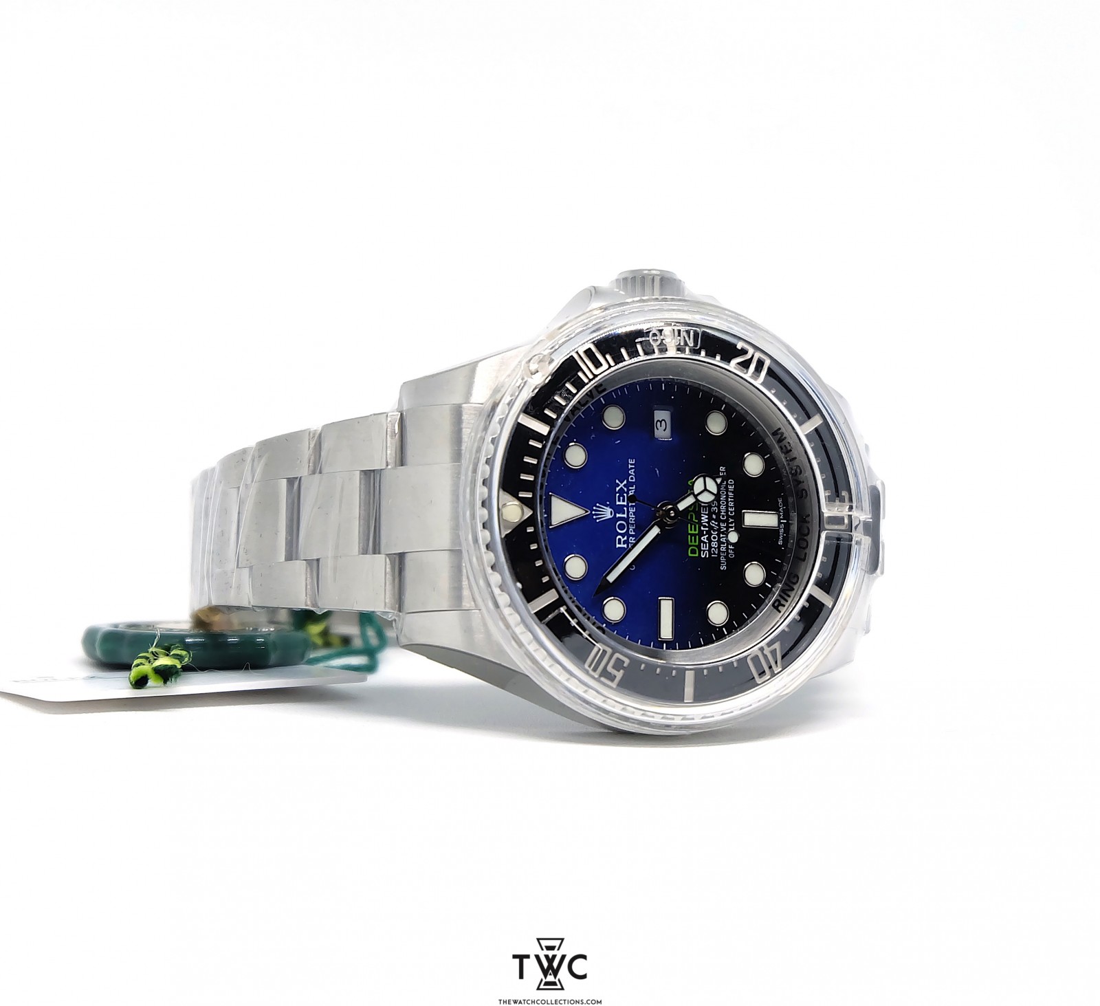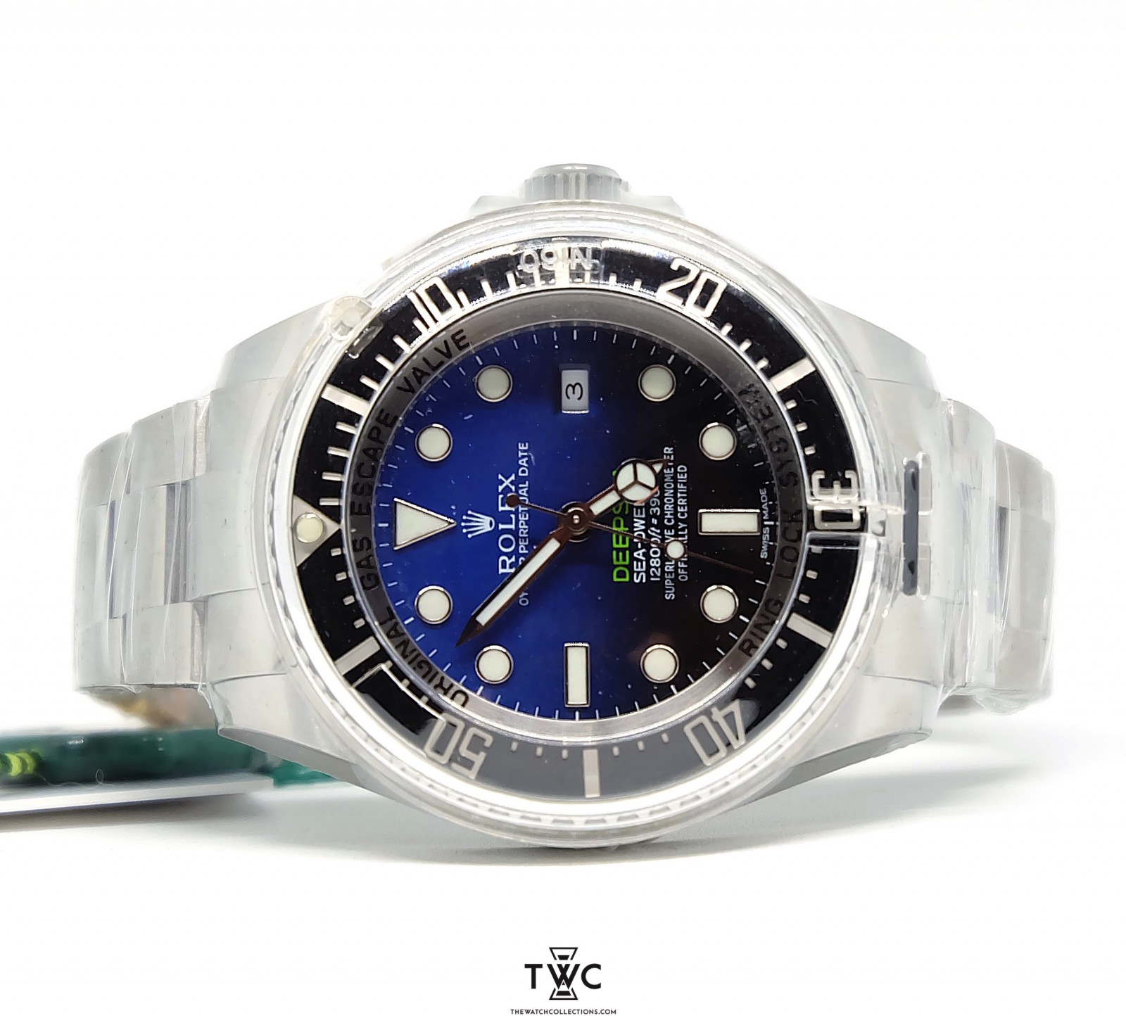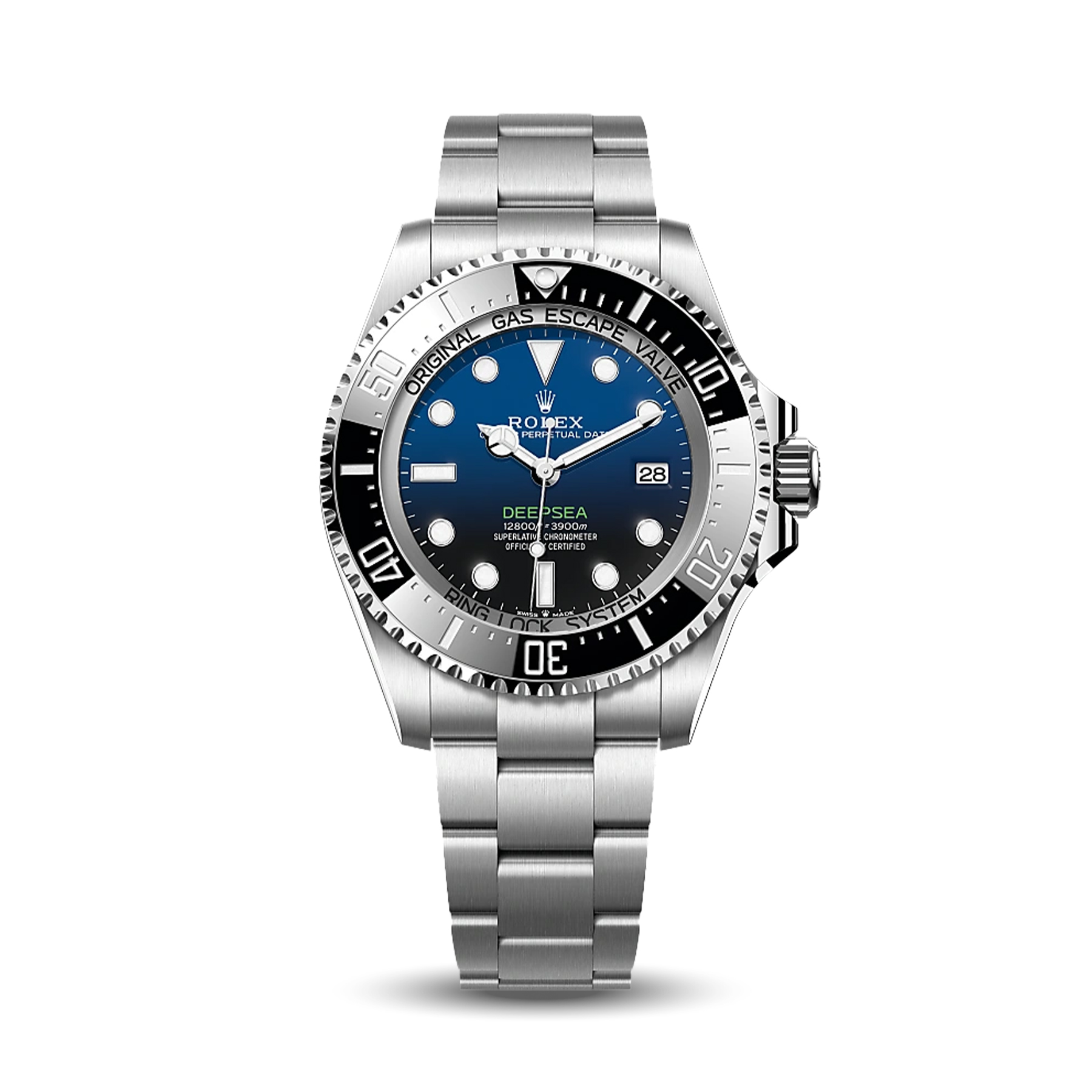 The Rolex Deepsea D-Blue 2017 features a large stainless steel case with gradient blue-to-black dial. Rugged, sporty, and professional for diving.