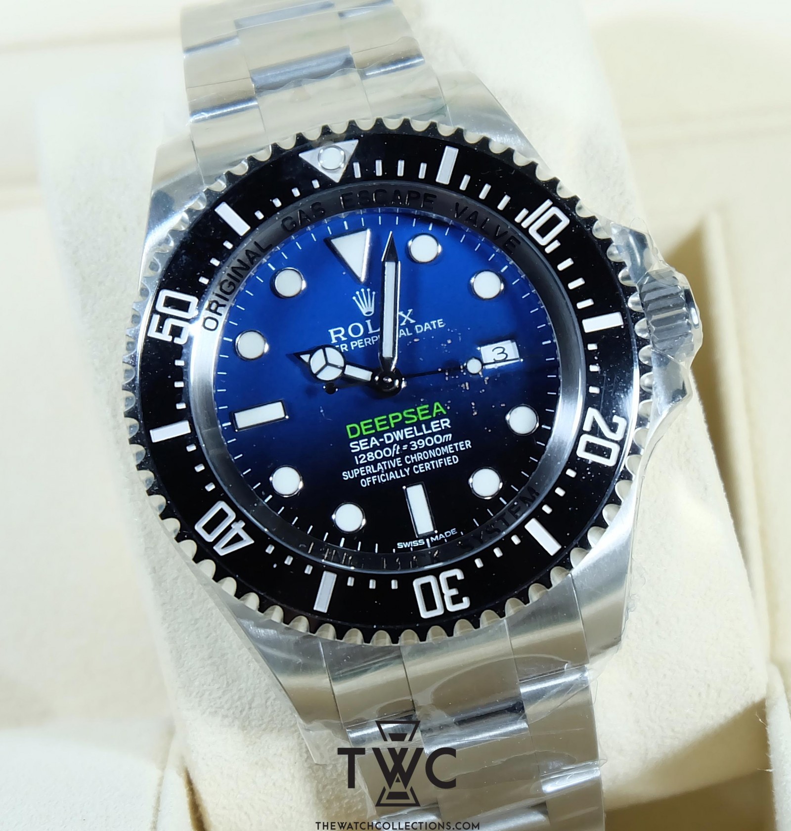 The Rolex Deepsea D-Blue Dial is an iconic professional dive watch built for extreme conditions, featuring a bold and instantly recognizable design. The blue-to-black gradient dial is inspired by the Deepsea Challenge expedition, giving the watch a distinctive identity. Crafted in robust Oystersteel with exceptional water resistance, this model represents the pinnacle of Rolex dive watch engineering with strong collectibility.