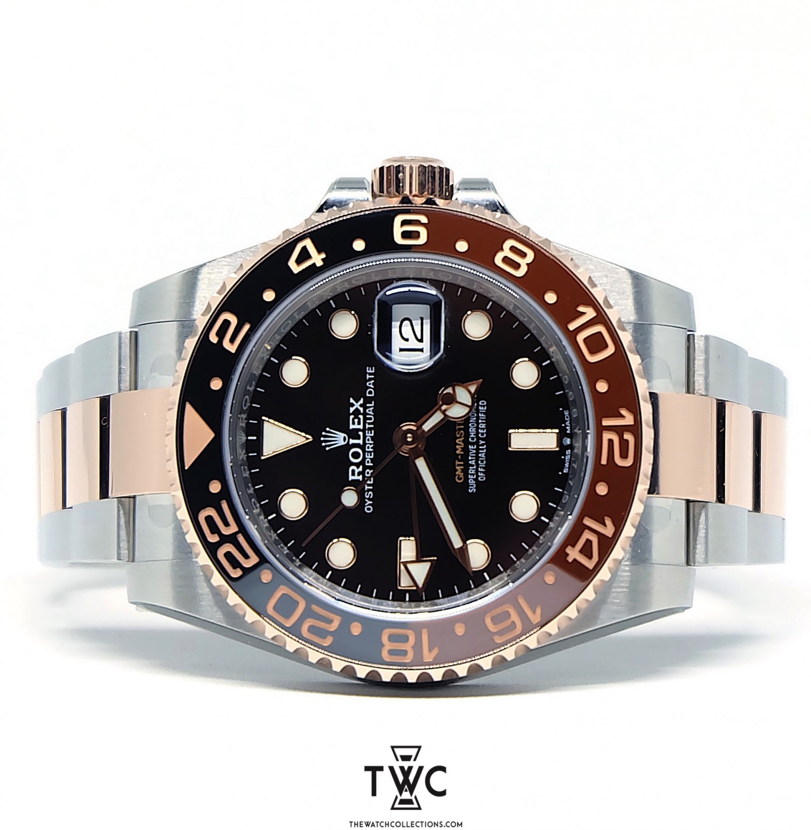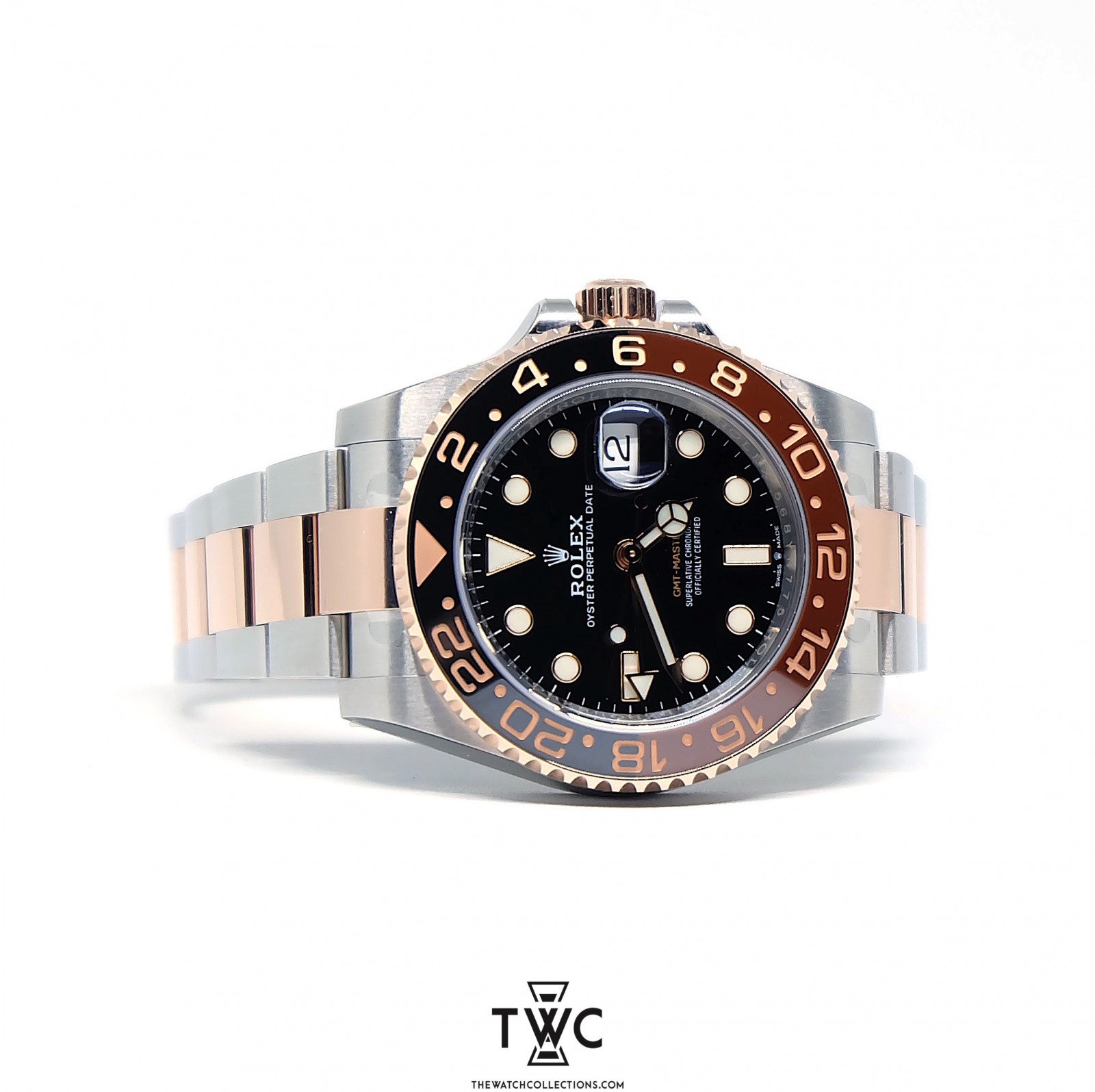 The Rolex GMT-Master II Rootbeer features a brown and black bezel with stainless steel case. Perfect for travelers and collectors who appreciate classic design.