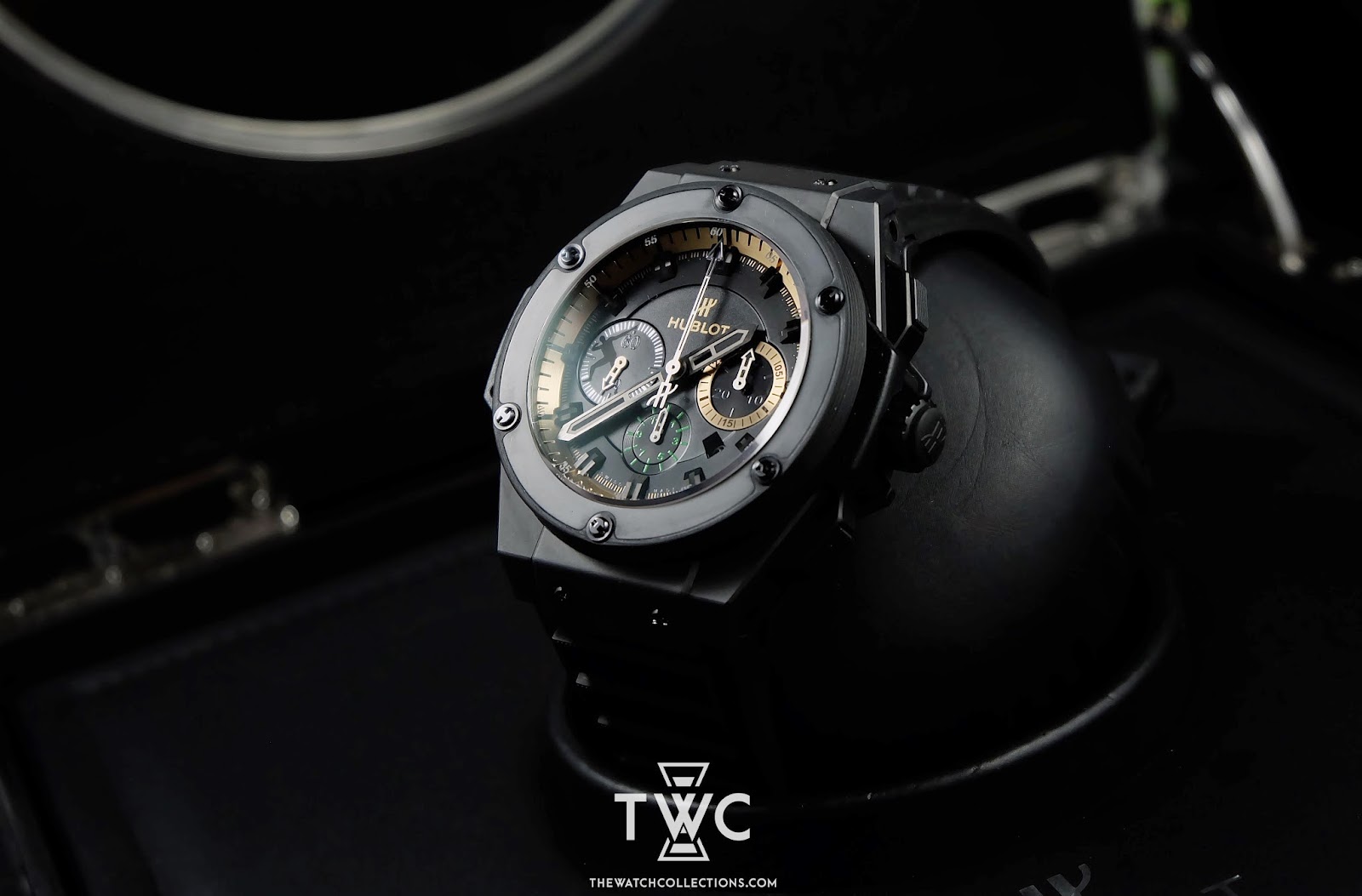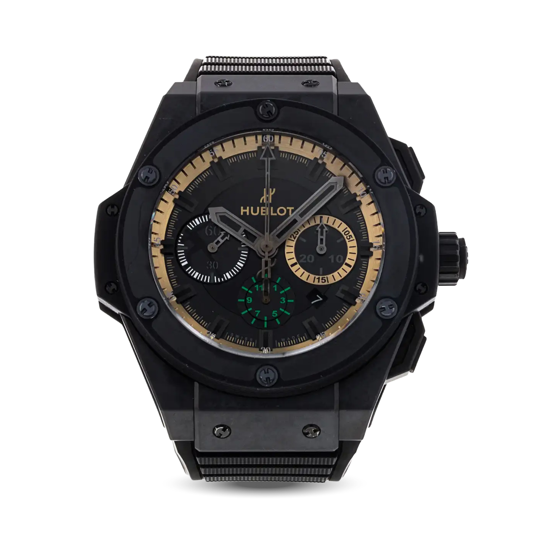 The Hublot King Power Usain Bolt showcases a sporty design with a ceramic case and Hublot’s signature gold strap. Limited to 250 pieces, this edition is perfect for collectors seeking a blend of luxury and uniqueness.