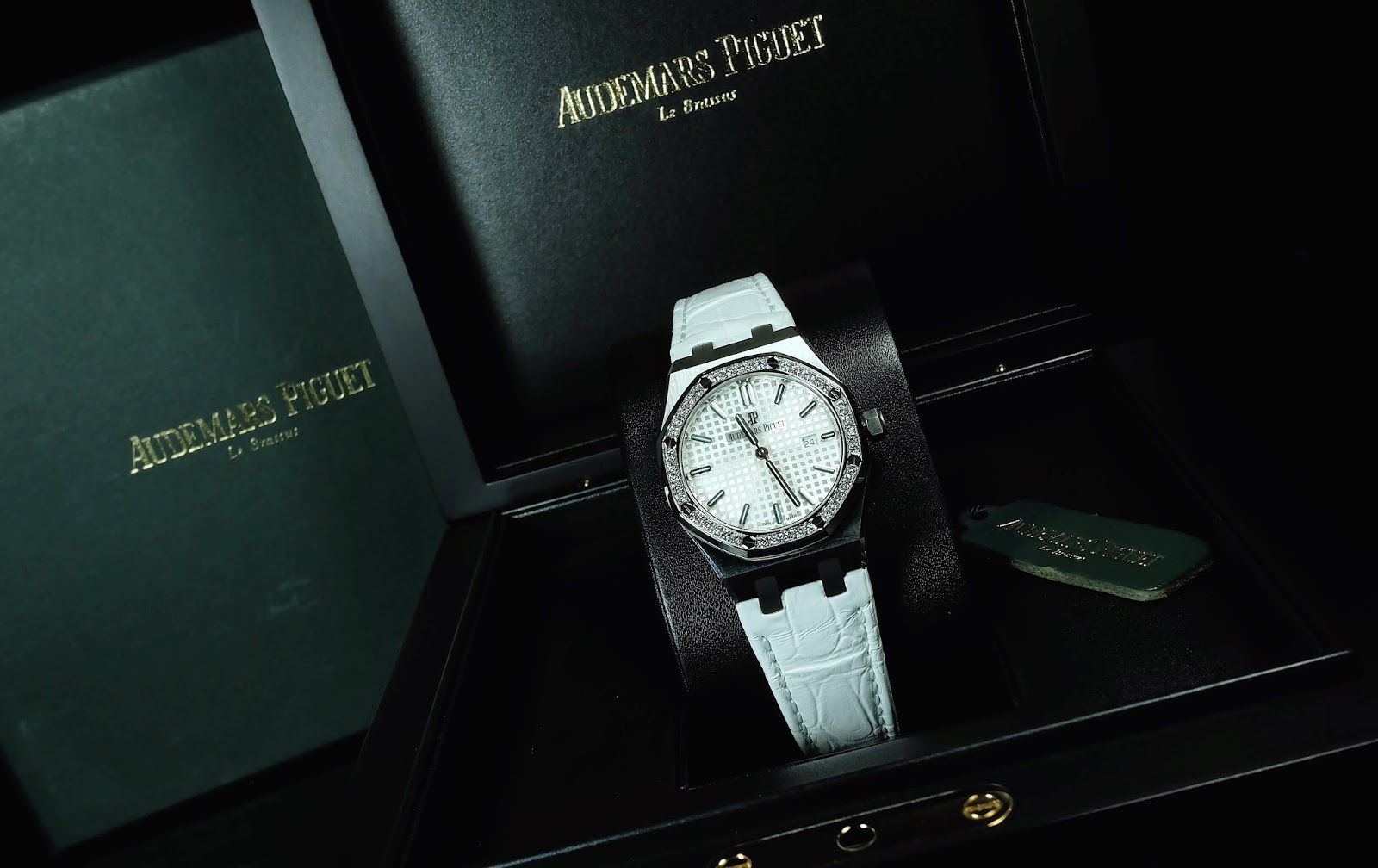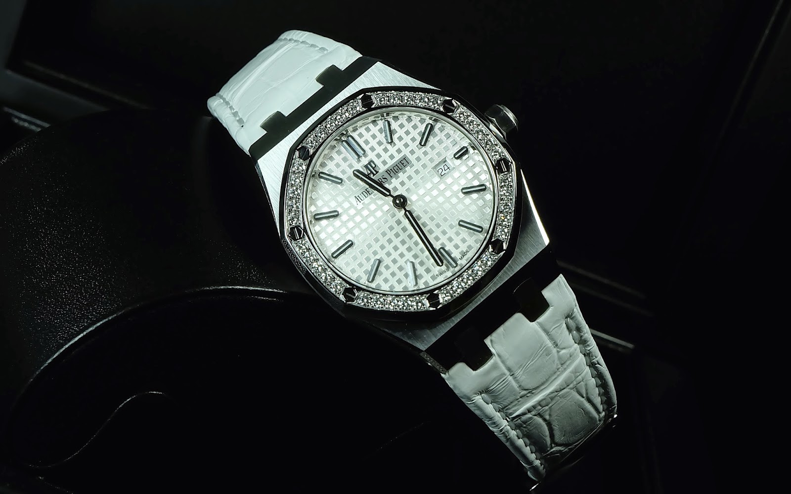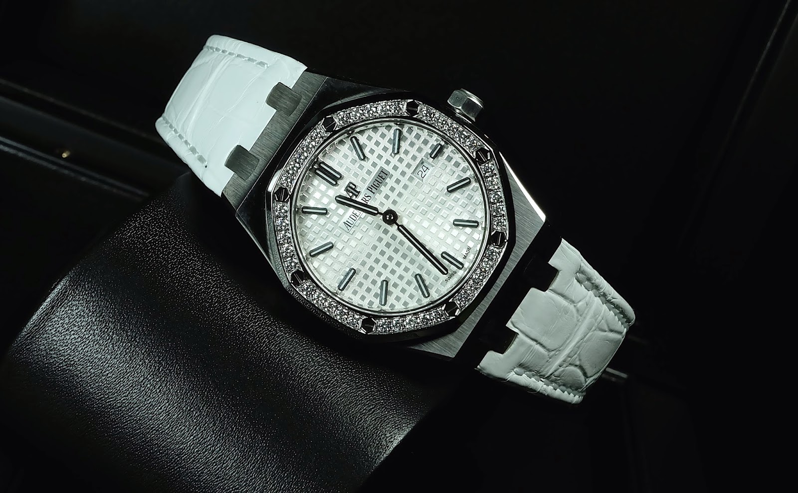 The Audemars Piguet Ladies RO Quartz Diamond features a diamond-set case and bezel with precise quartz movement. Elegant for both daily wear and formal occasions.