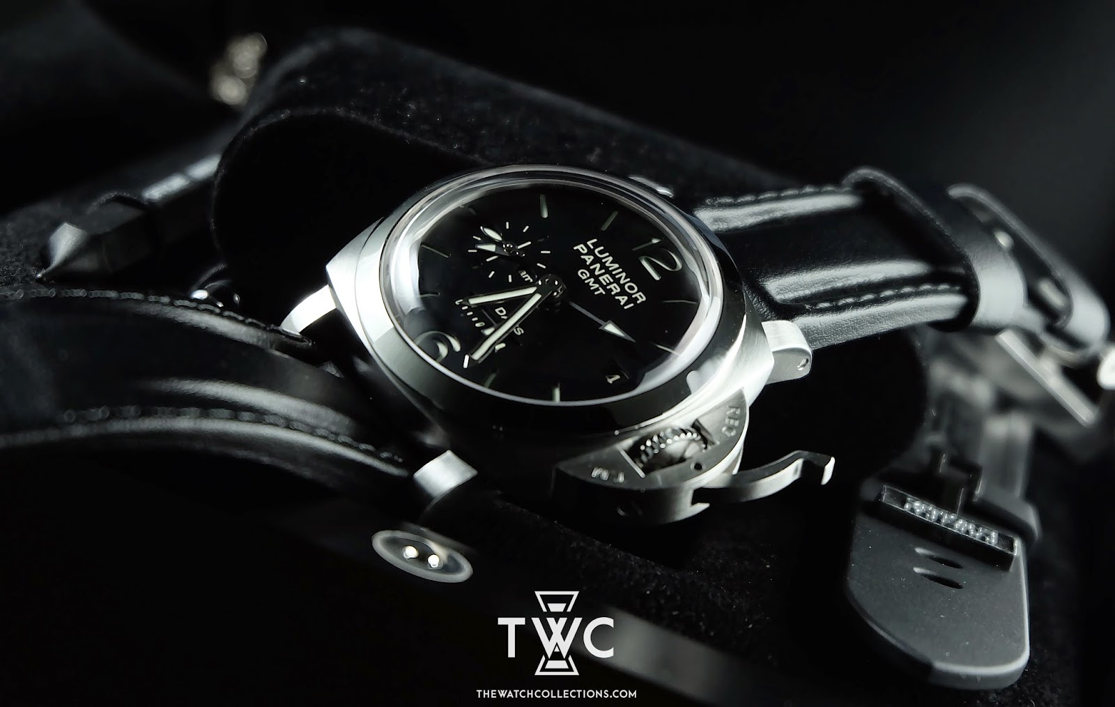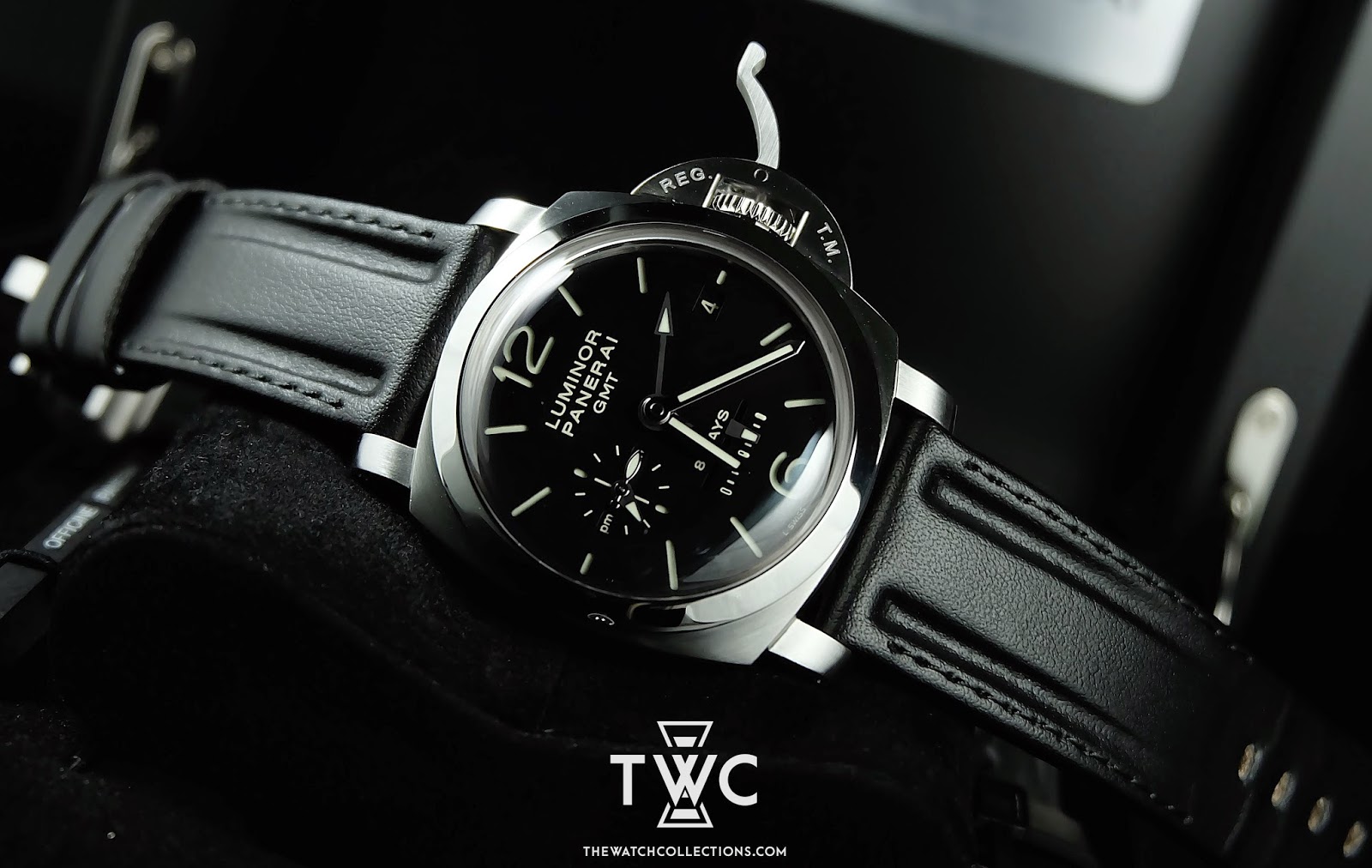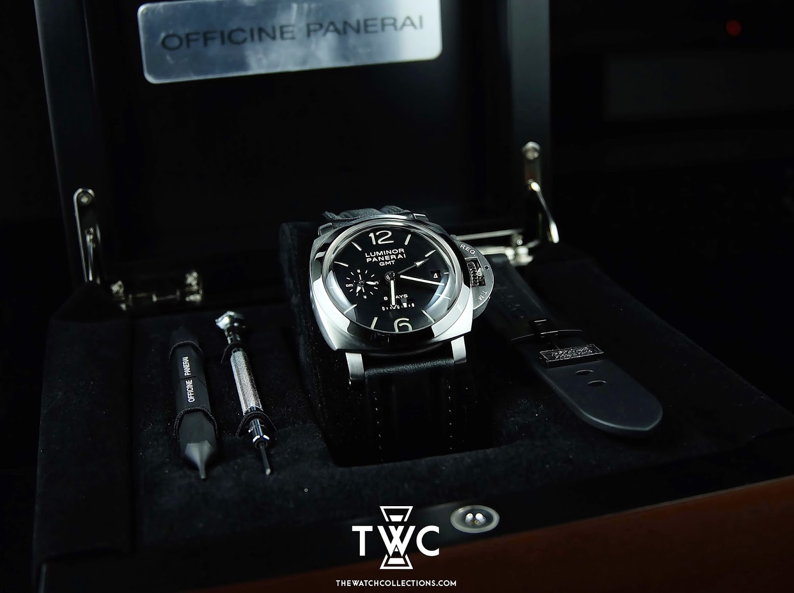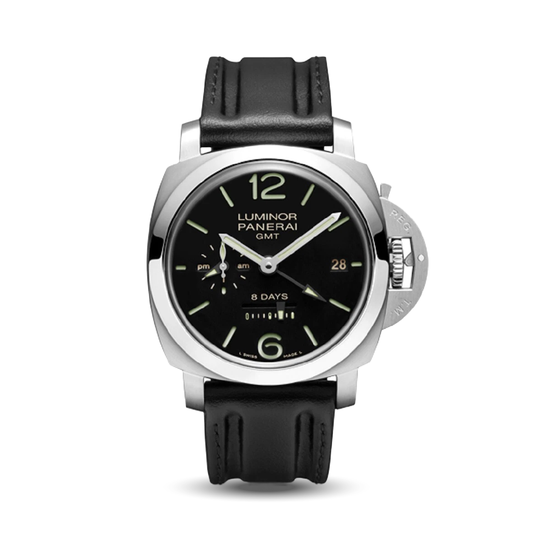 The Panerai Luminor 1950 8 Days GMT PAM233 features a 44mm case with GMT function and 8-day power reserve. Ideal for collectors who appreciate large, highly functional watches.