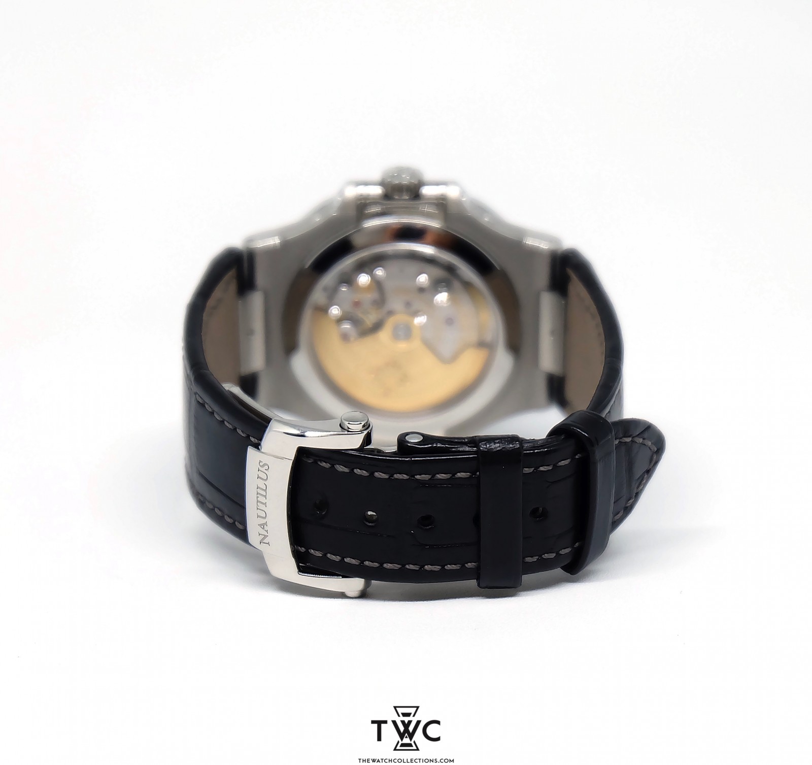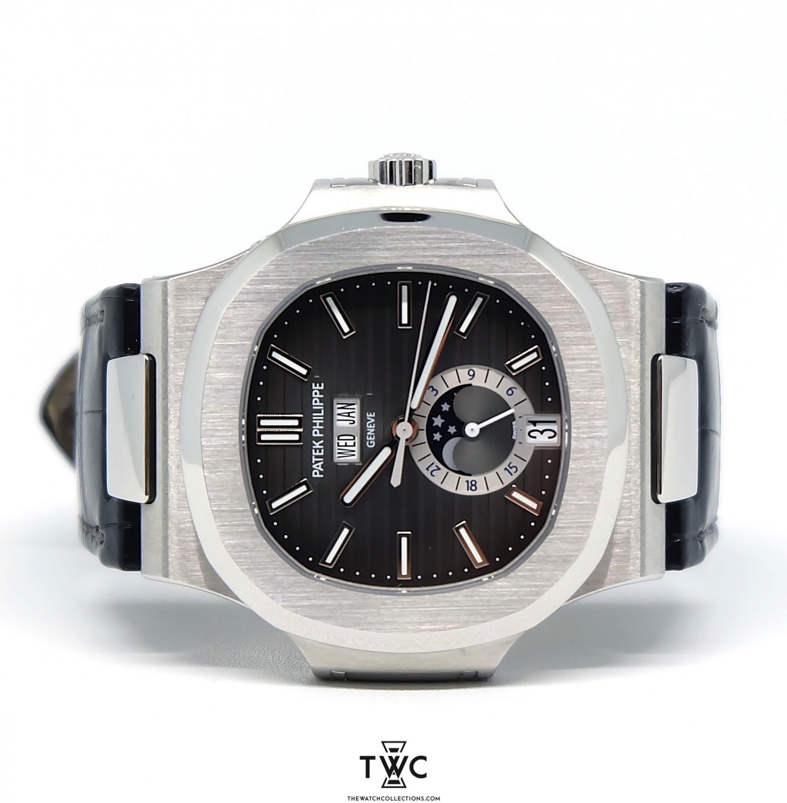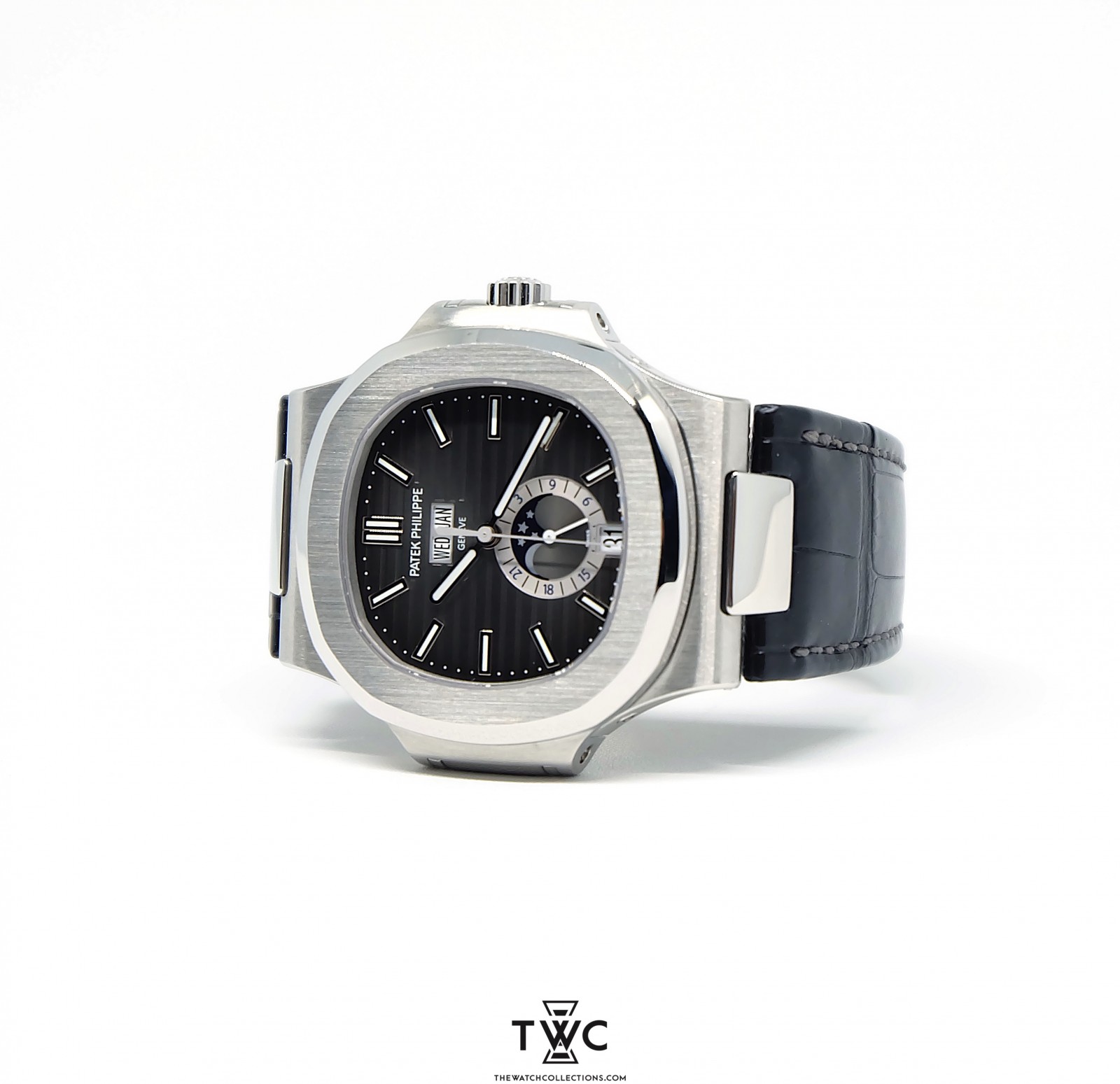 The Patek Philippe Nautilus 5726A features a 40mm stainless steel case with blue moonphase dial and annual calendar. Elegant and classic, ideal for Patek Philippe collectors and complication watch enthusiasts.