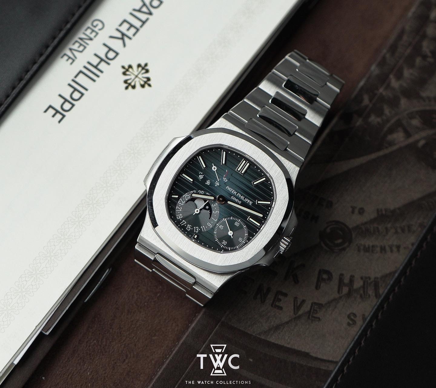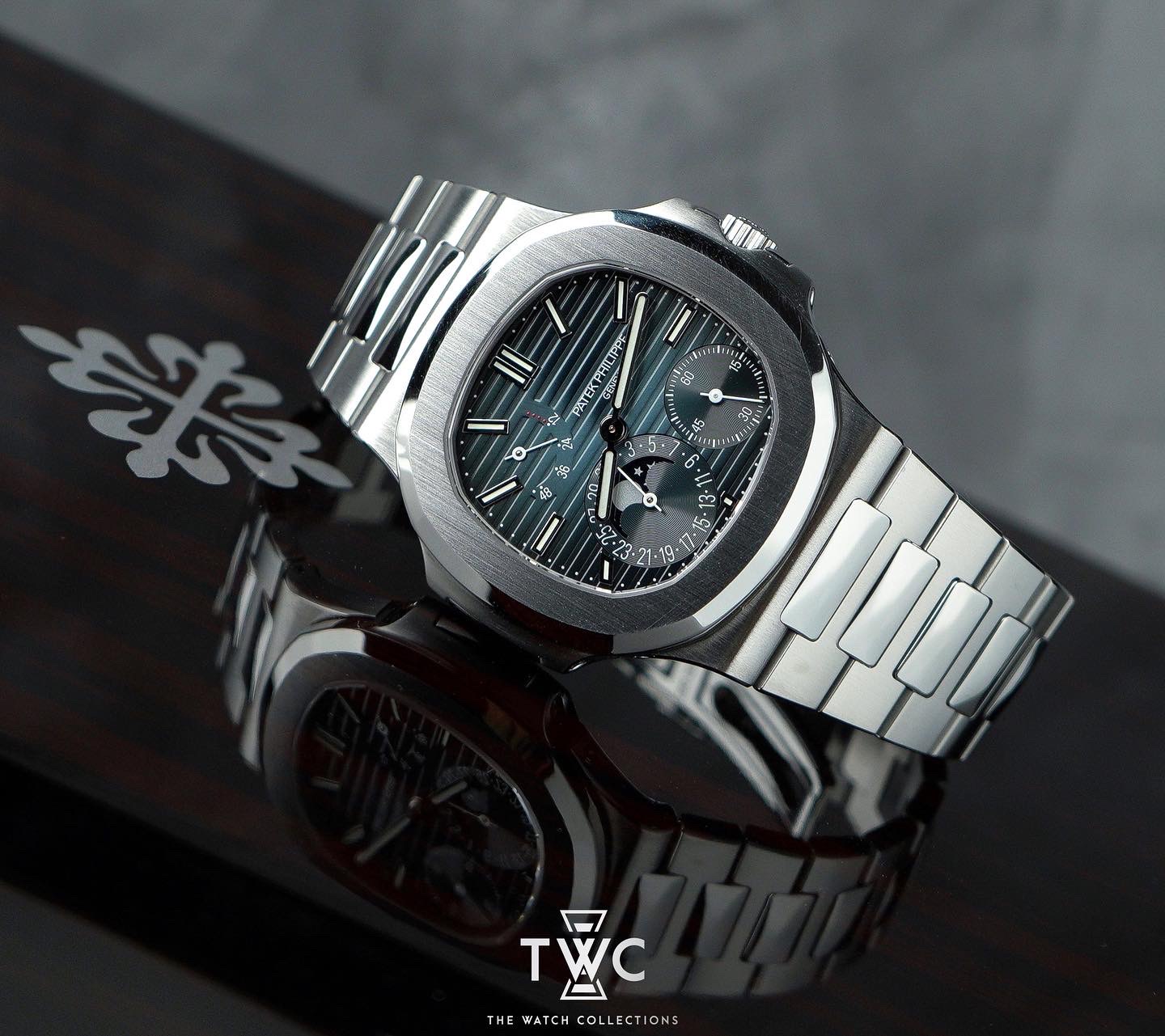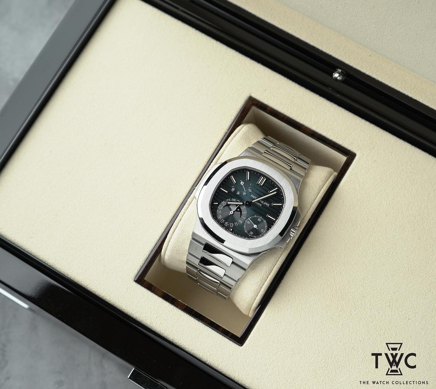 The Patek Philippe Nautilus Moonphase 5712/1A features moonphase and date complications in a stainless steel case. A favorite among collectors who appreciate elegant design.