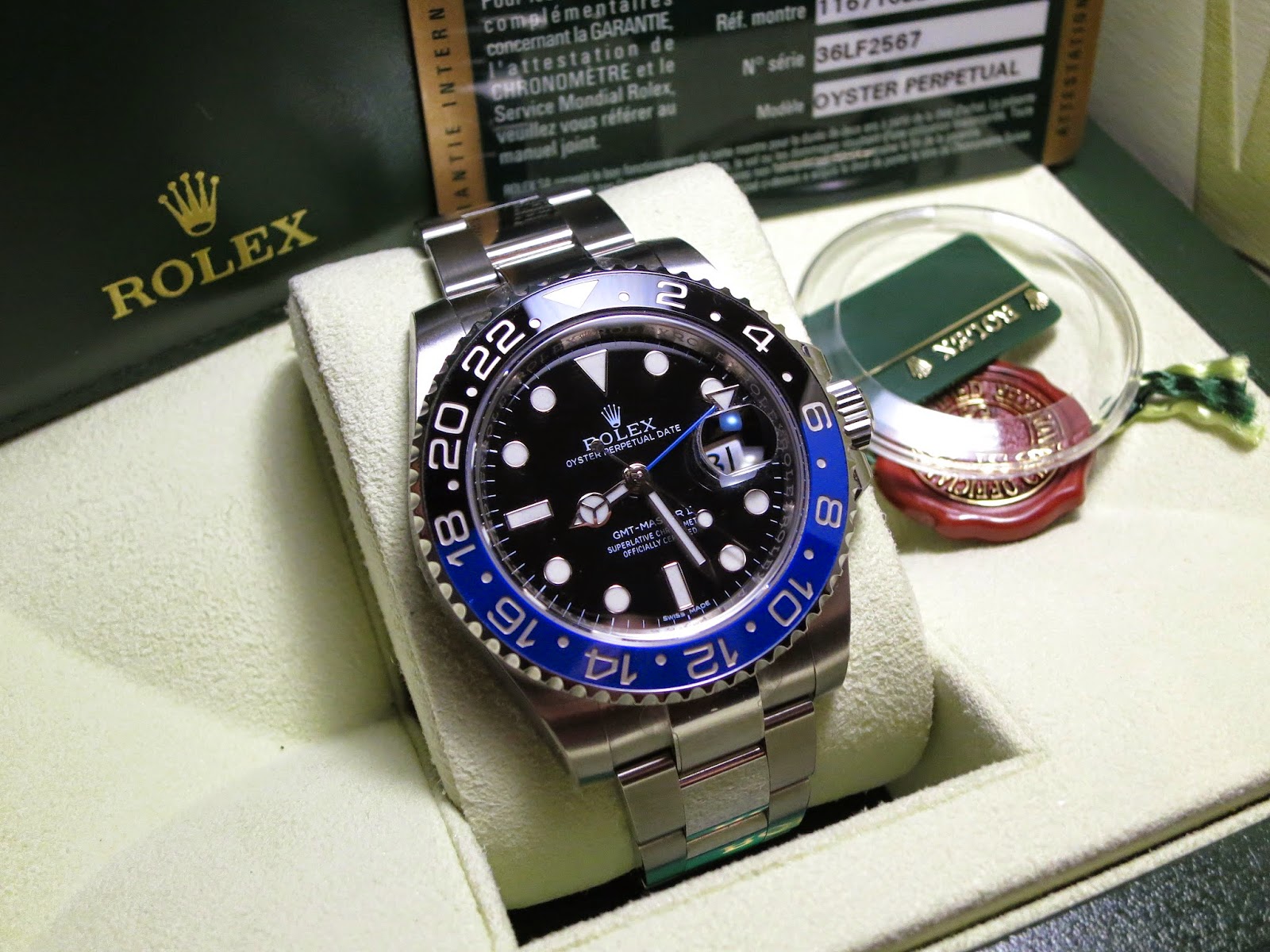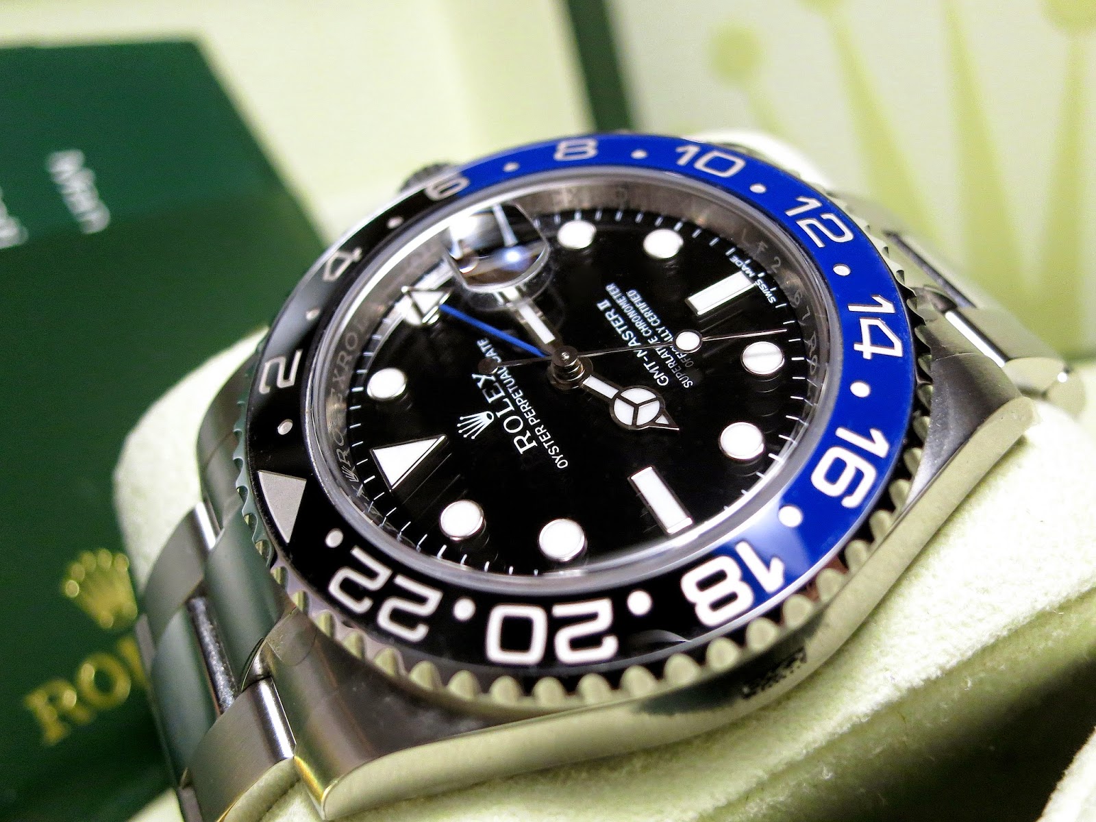 The Rolex GMT-Master II Blue Black features the iconic blue and black bezel contrasting with a classic black dial. Its 40mm stainless steel case provides a masculine and elegant look. GMT function allows tracking of dual time zones, perfect for travelers. Sporty yet luxurious style makes it ideal for all occasions.