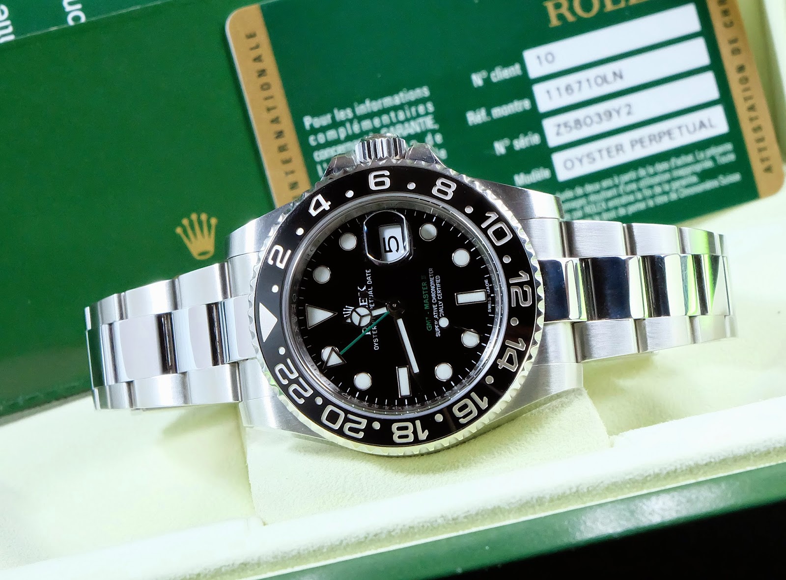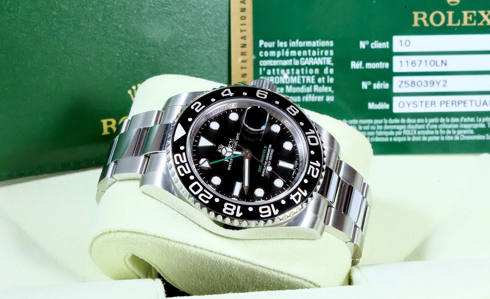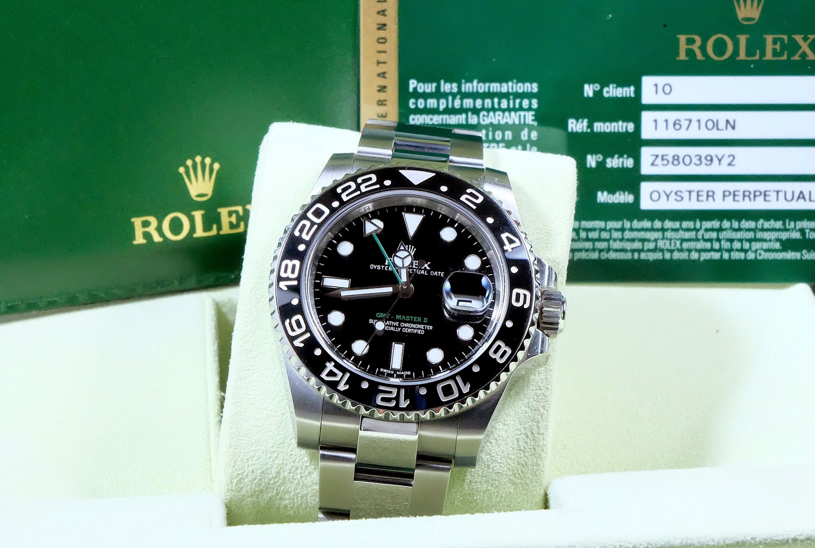 The Rolex Oyster Perpetual GMT-Master II features a stainless steel case with bi-color bezel and GMT function. Ideal for travelers and Rolex watch collectors.