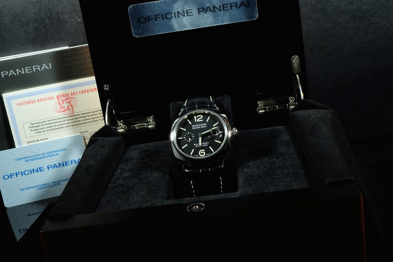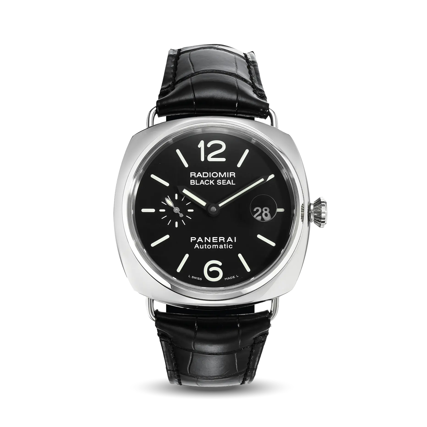 The Panerai Radiomir Black Seal Automatic features a stainless steel case with minimal black dial. Elegant, functional, and ideal for everyday wear.