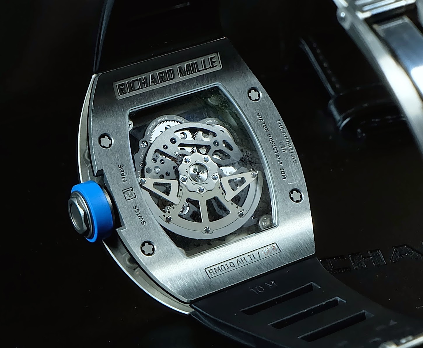 The Richard Mille RM010 Titanium “The Americas” features an ergonomic tonneau-shaped titanium case that offers exceptional strength with lightweight comfort. Its skeleton dial showcases the automatic RMAS7 movement architecture, reflecting Richard Mille’s high-tech philosophy inspired by aerospace and motorsport engineering. Produced in extremely limited numbers, this edition stands out as a highly exclusi