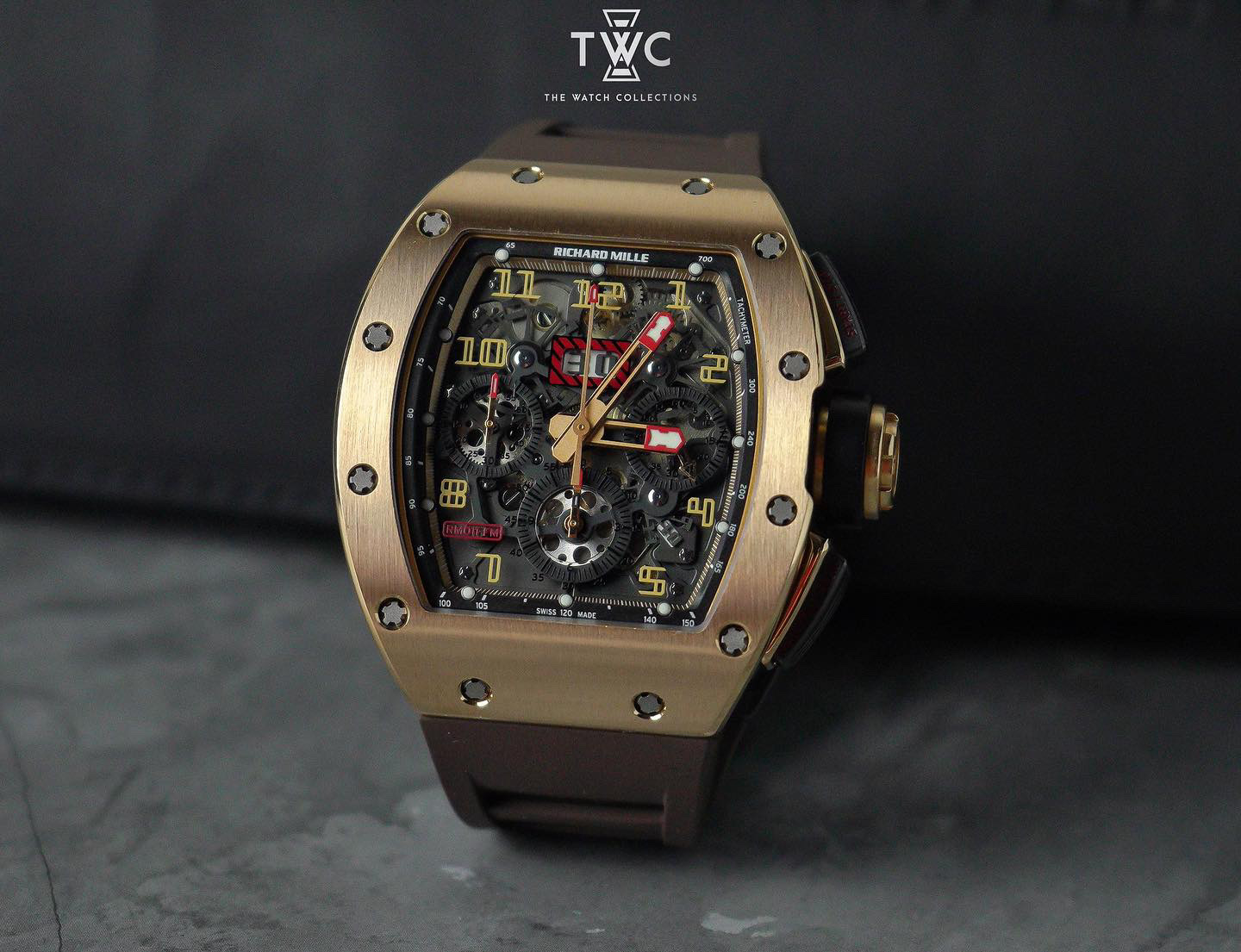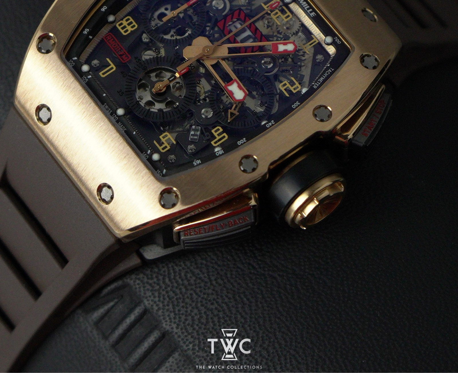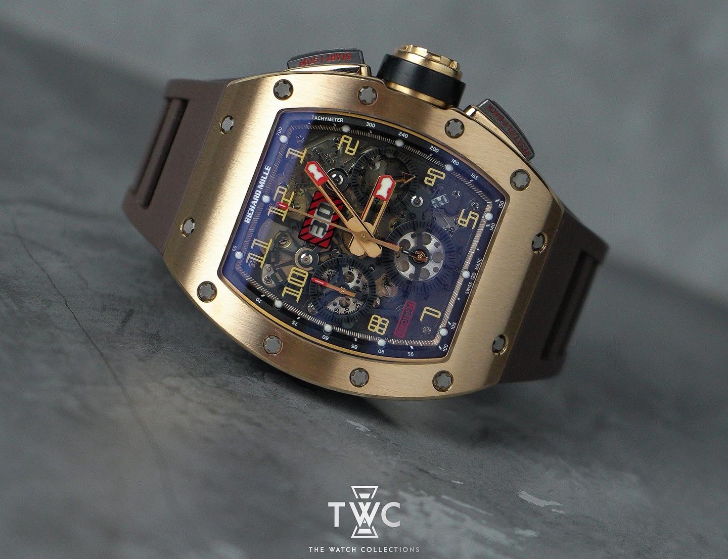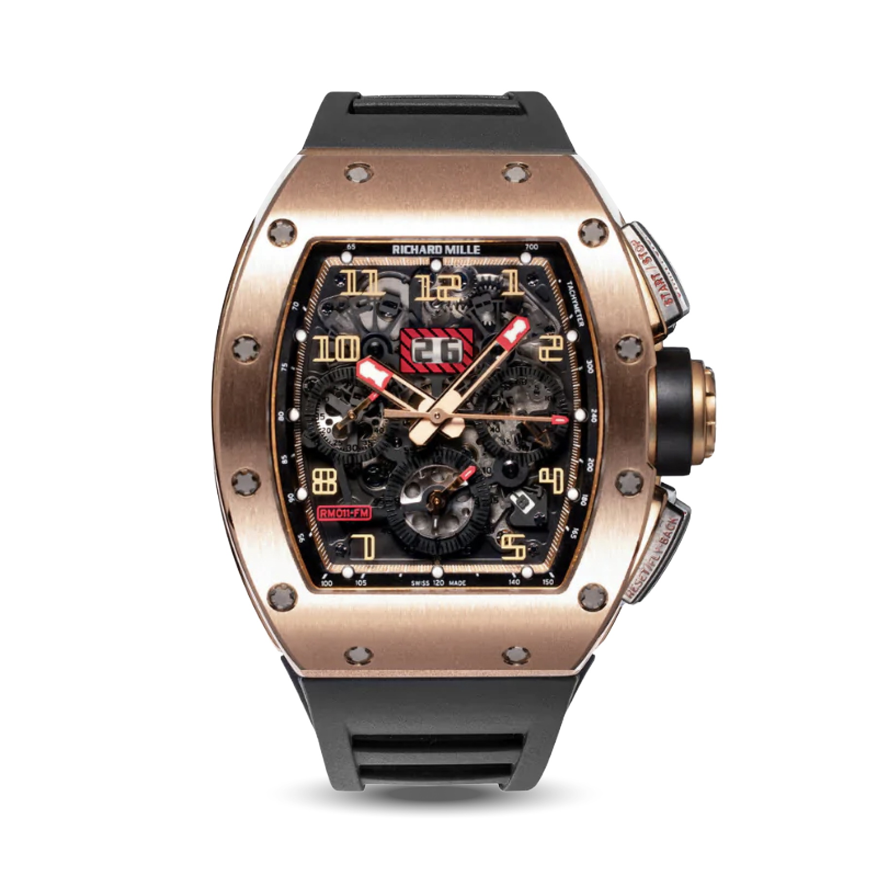The RM011 AM Ti “Red‑Kite” is an exclusive Richard Mille flyback chronograph with a lightweight titanium case and bold skeletonized design. Highly collectible and performance-oriented, it features month and oversized date indicators. The automatic movement delivers both reliability and visual appeal for sport-luxury wristwatch enthusiasts.