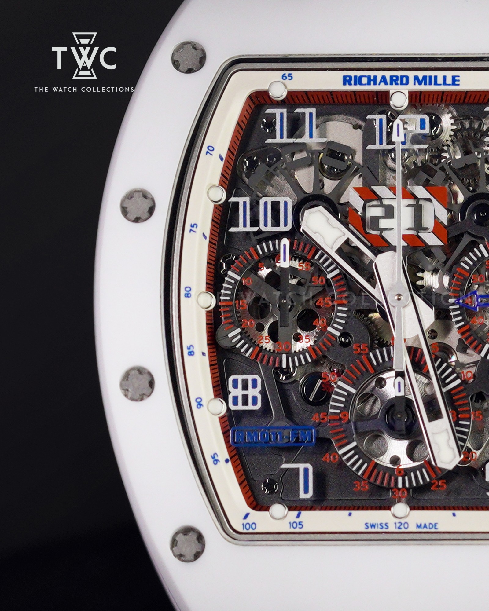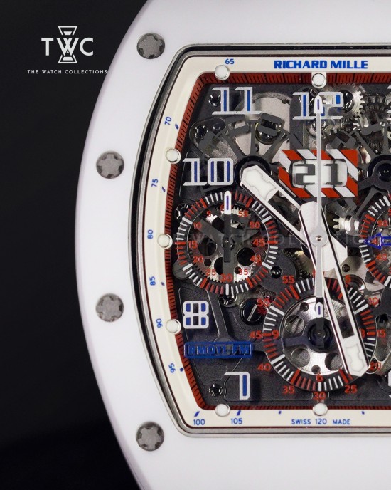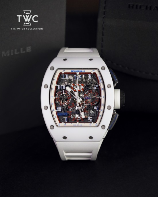 The Richard Mille RM011 White Ceramic Asia Edition features a white ceramic case with skeleton dial. Limited to 50 pieces, sporty and exclusive.