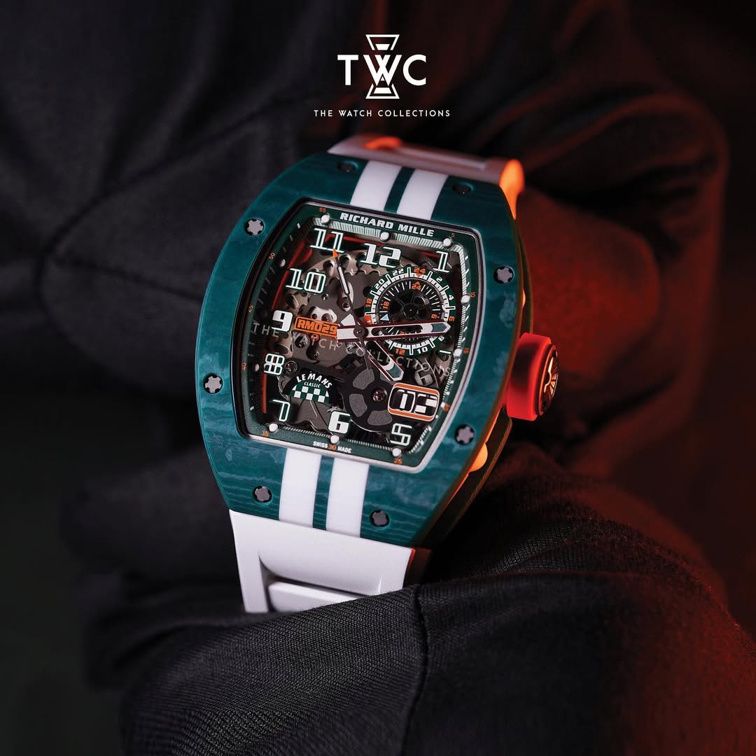 The Richard Mille RM029 TPT Le Mans Classic features a TPT carbon case with skeleton dial. Limited edition of 150 pieces, highlighting technical innovation and exclusivity.