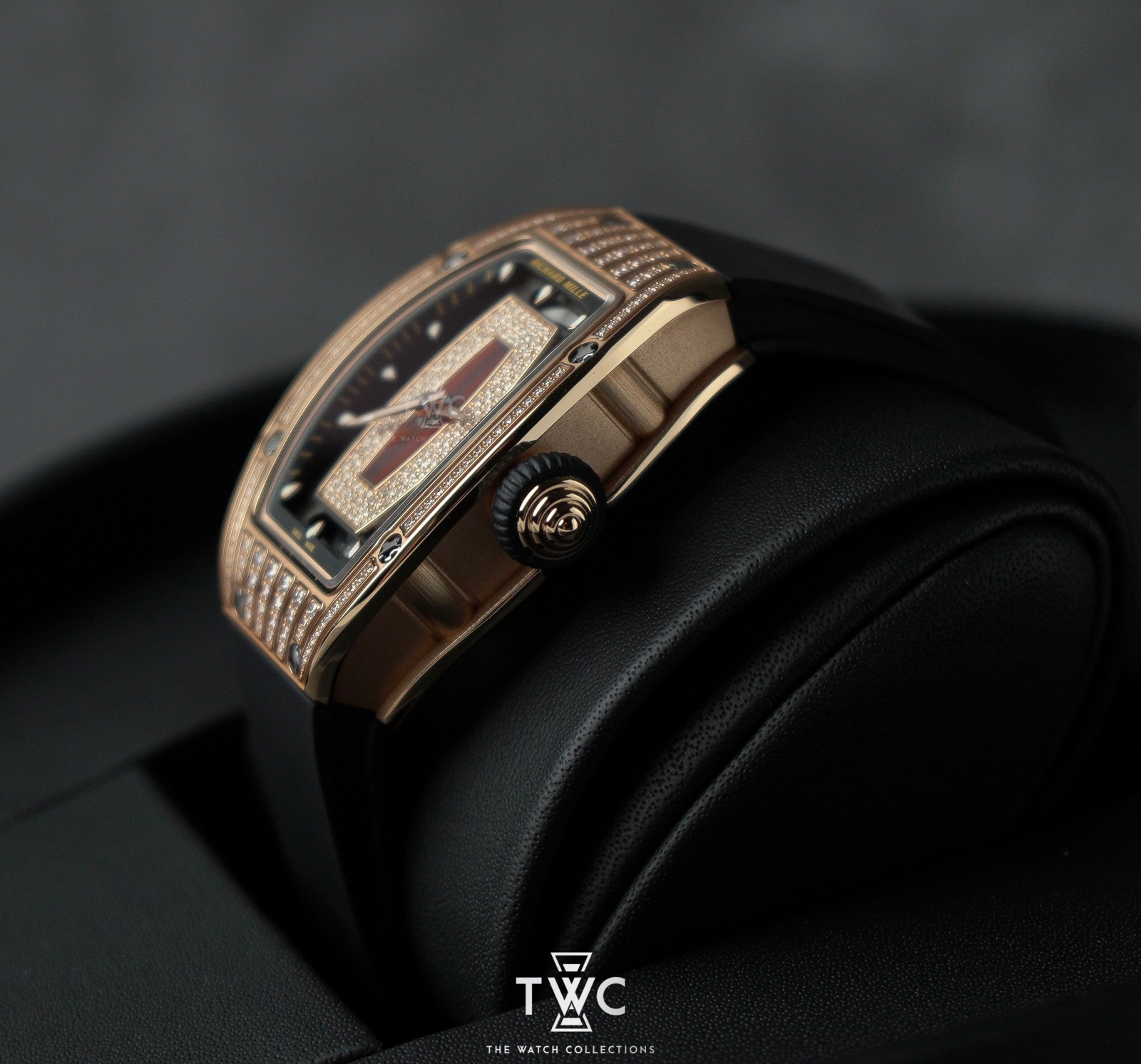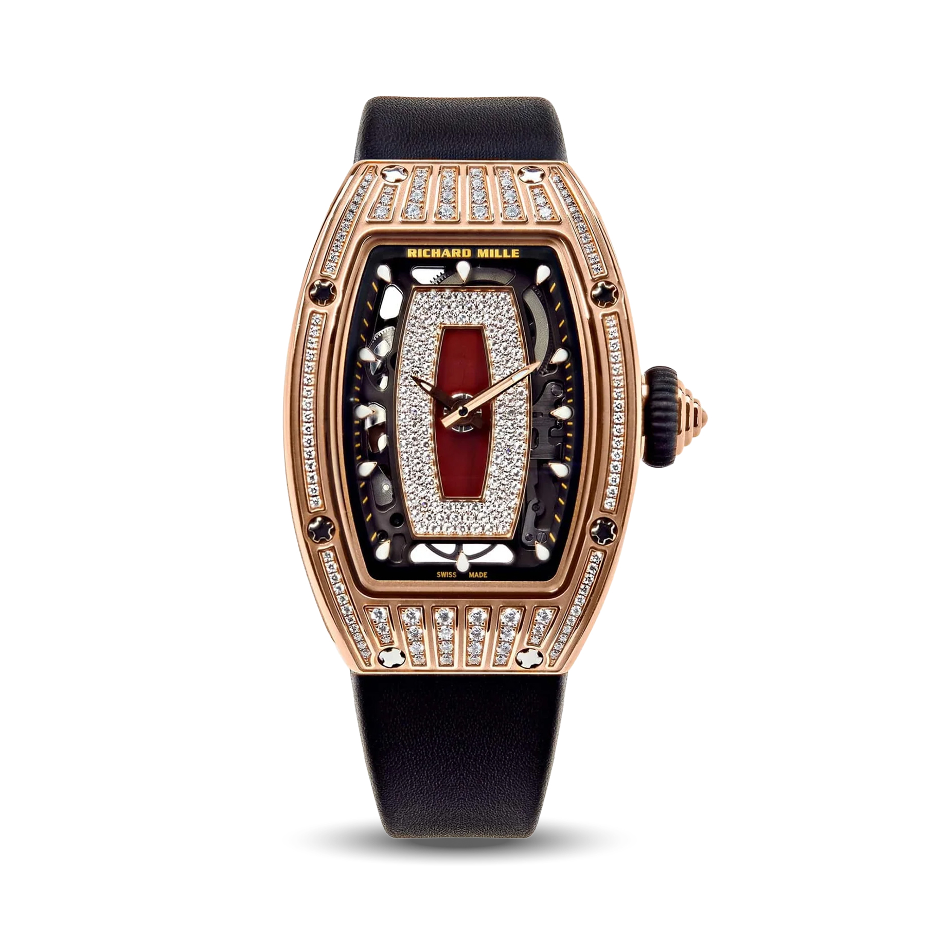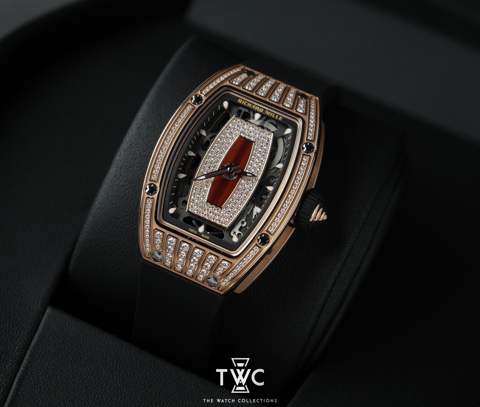 The Richard Mille RM07-01 Rose Gold Jasper Dial features a rose gold case with jasper dial and factory-set diamonds. Elegant, exclusive, and ideal for women’s collections.