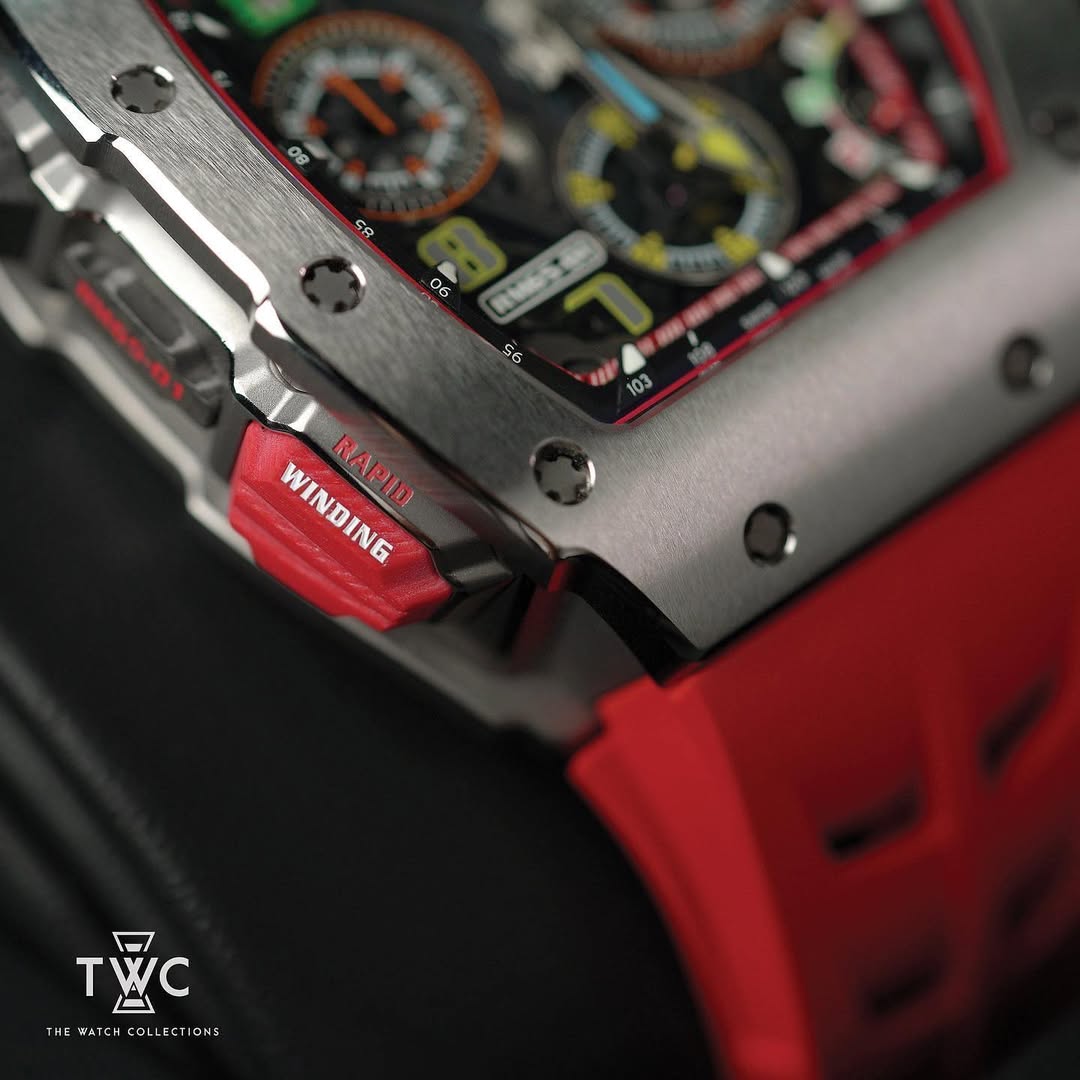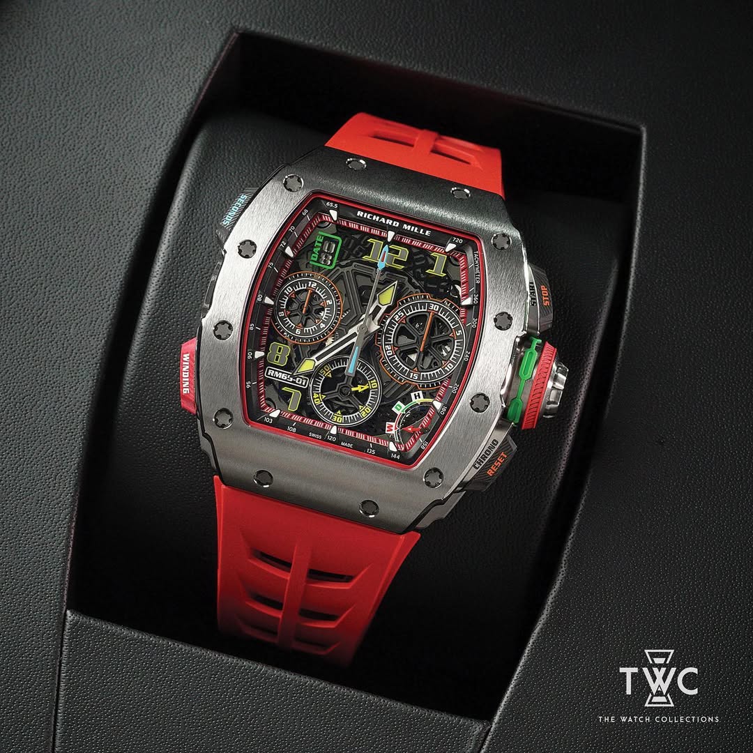 The Richard Mille RM65-01 Titanium is an automatic flyback chronograph boasting a futuristic design and ultra-high performance. Crafted from lightweight yet durable titanium, this timepiece features Richard Mille’s signature skeletonized dial, revealing the sophisticated RMAC4 movement with a 60-hour power reserve and 51 jewels, delivering exceptional precision and reliability. Measuring 44.5 x 49.5 mm, with a sapphire crystal and black rubber strap with a titanium buckle, the RM65-01 offers comfort and sporty elegance. This watch is an ideal choice for collectors seeking innovation, exclusivity, and cutting-edge horology.
