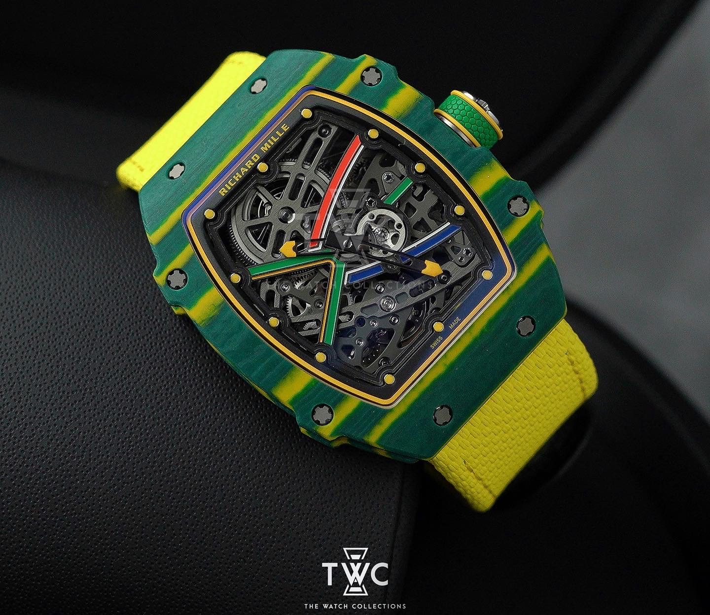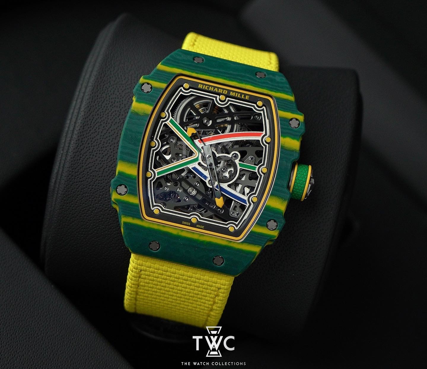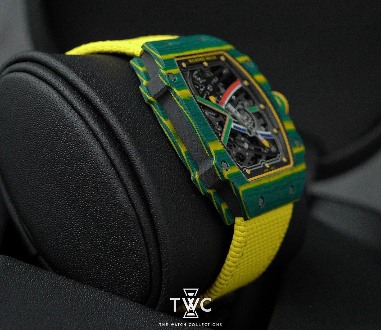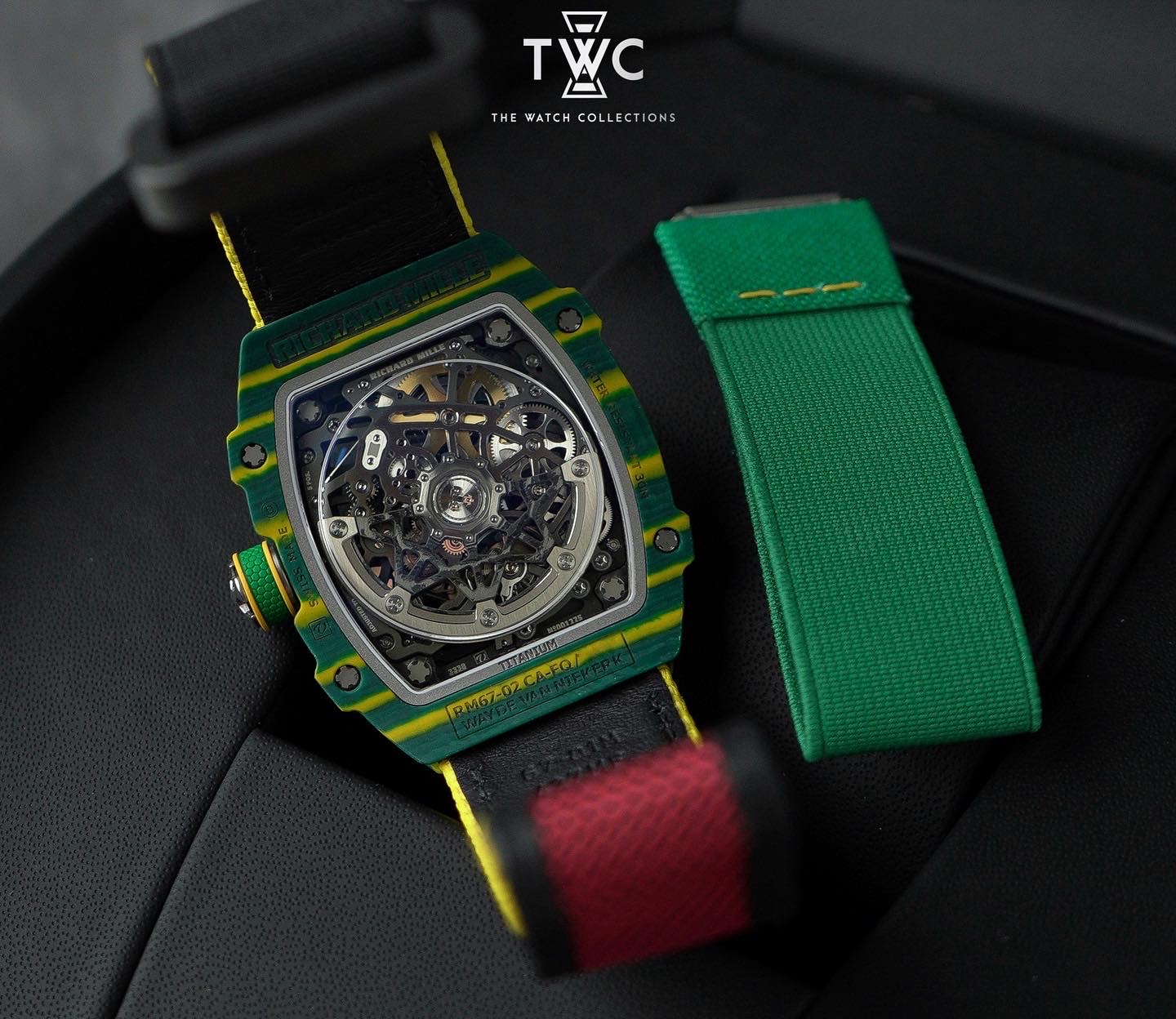 The Richard Mille RM67-02 Wayde Van Niekerk is an ultra-light extra-flat timepiece built for high performance. Its NTPT Carbon case is paired with a skeletonized dial that highlights Richard Mille’s technical design language. Powered by the automatic CRMA7 movement with a slim profile and 50-hour power reserve, this model delivers exceptional comfort and a strong sporty identity.