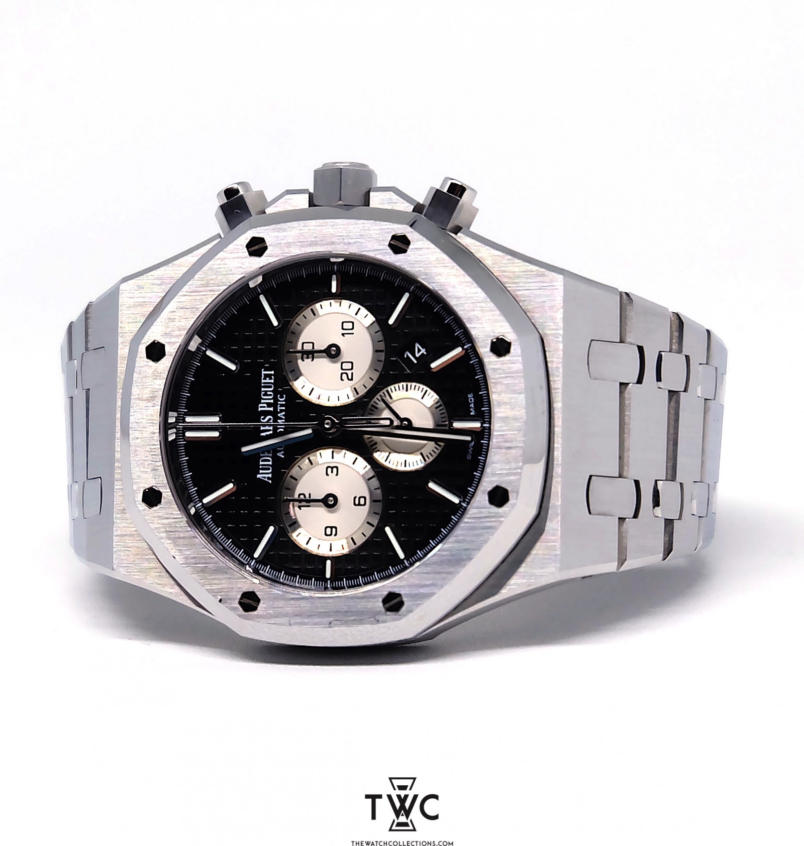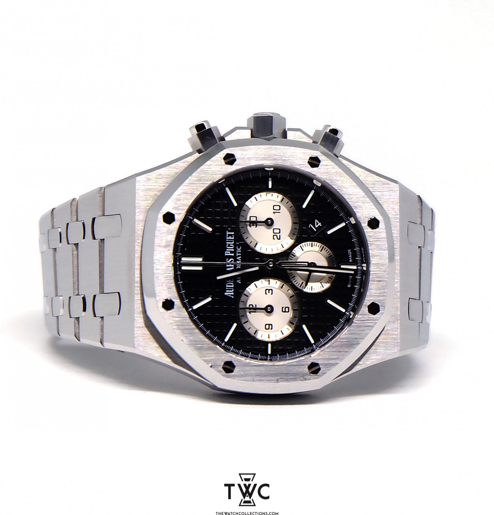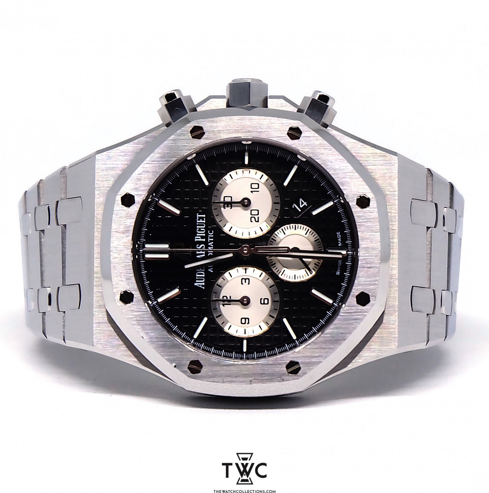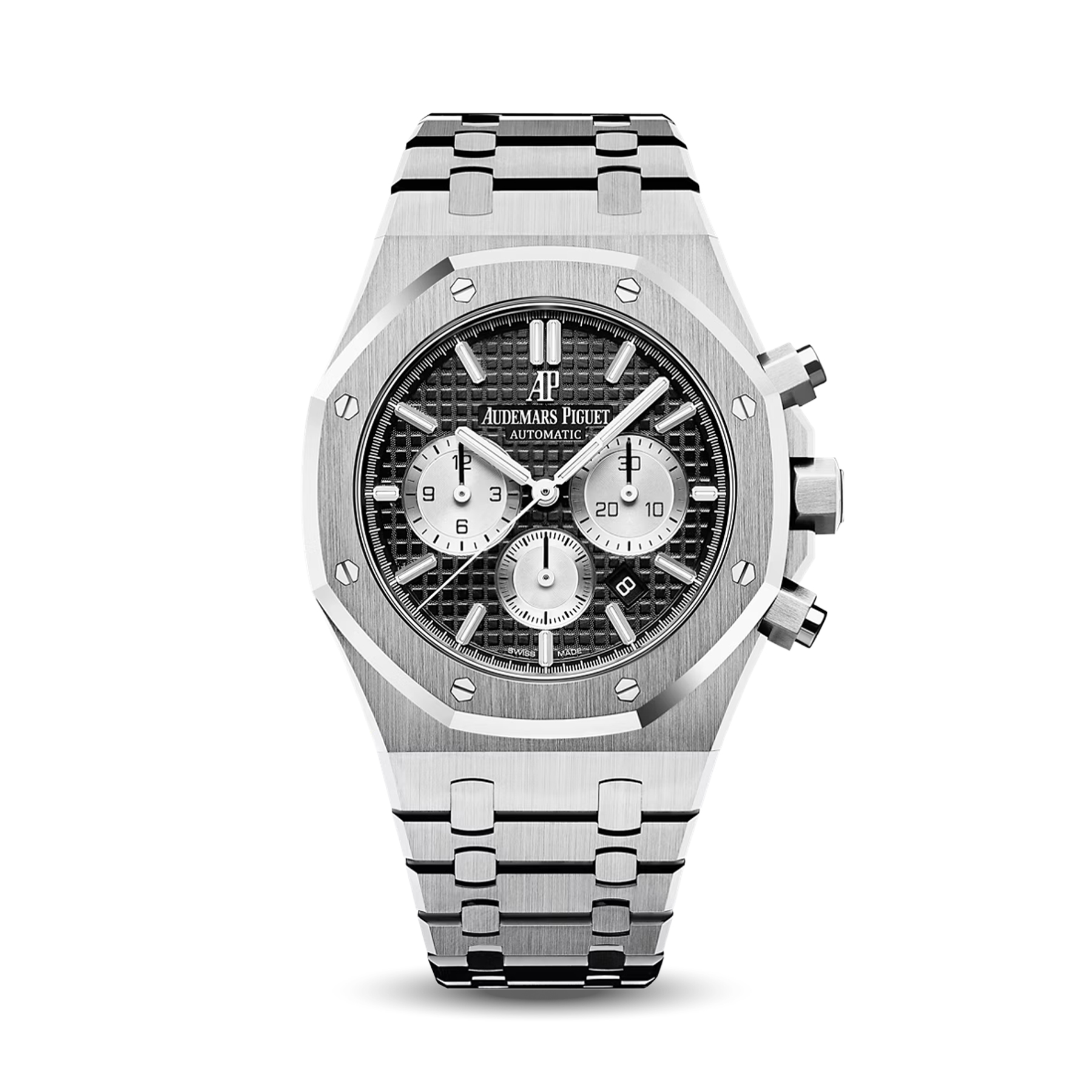 The Royal Oak Chronograph Stainless Steel (2017) combines sporty and elegant design with a stainless steel case and classic grey dial. The chronograph features clear hands and indices for easy readability. Its stainless steel bracelet adds a premium feel while ensuring daily comfort. This model is highly appreciated by collectors for its flawless finishing and collectible value.