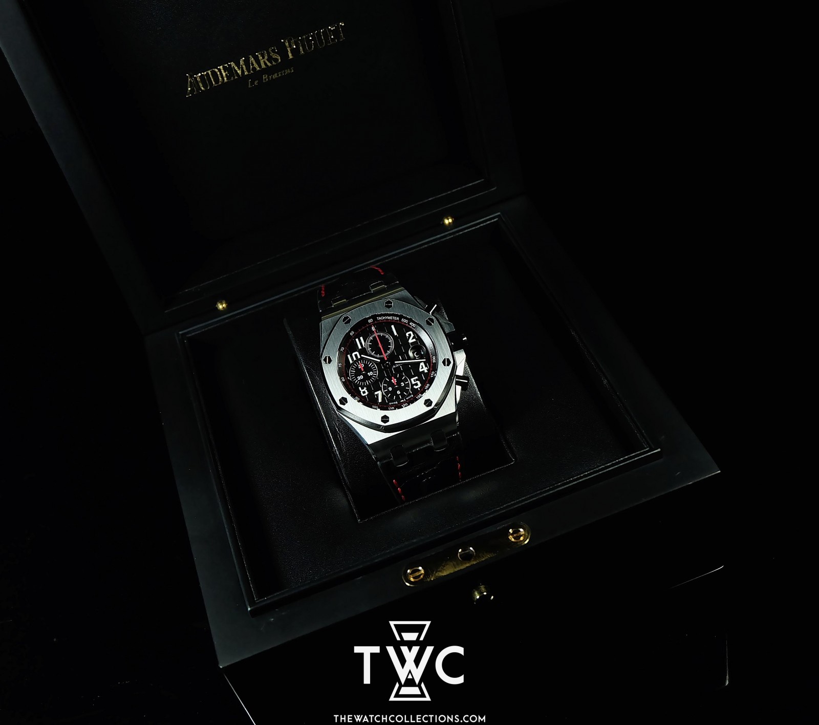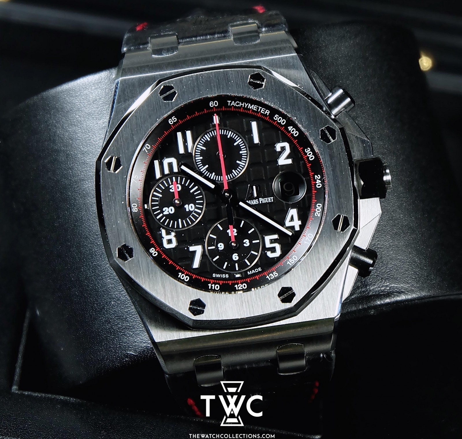 The Royal Oak Offshore Black Red showcases a sporty color combination with a 42mm stainless steel case and bold black-red dial. Equipped with chronograph and date functions, this timepiece blends aggressive aesthetics with high functionality, perfect for Audemars Piguet enthusiasts and everyday wear.