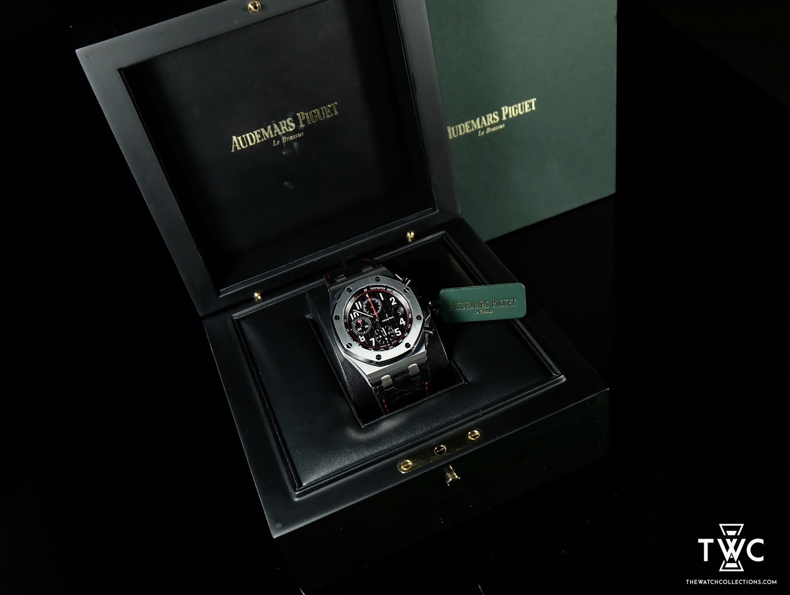 The Audemars Piguet Royal Oak Offshore Black Red features a striking black and red sporty aesthetic. Its stainless steel case paired with a black ceramic bezel delivers a bold, modern look. The black dial with red subdials ensures optimal legibility while maintaining strong design identity. This reference is highly favored by collectors who appreciate bold and dynamic Offshore timepieces.