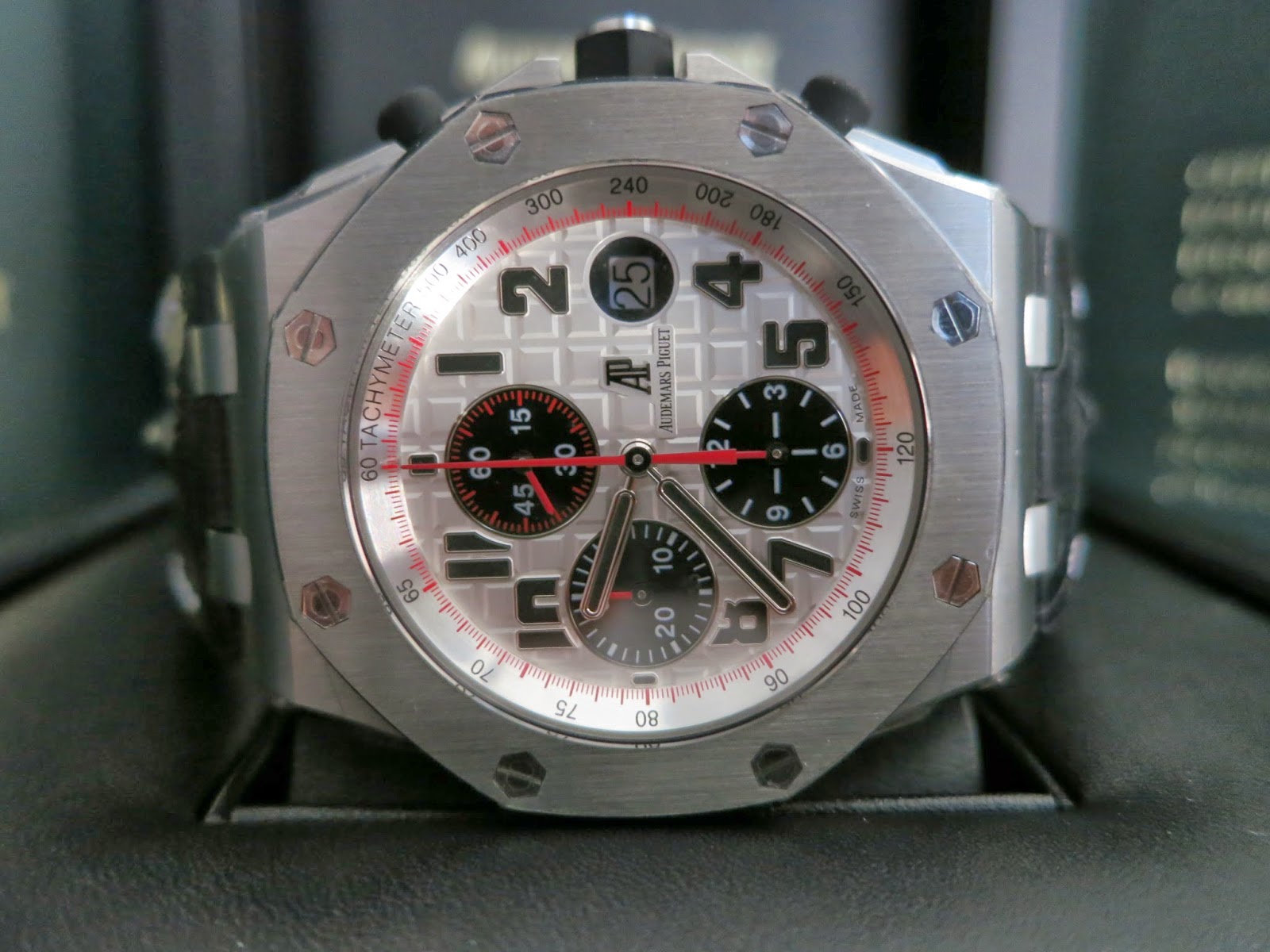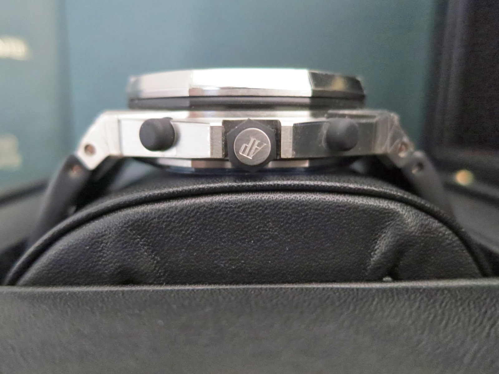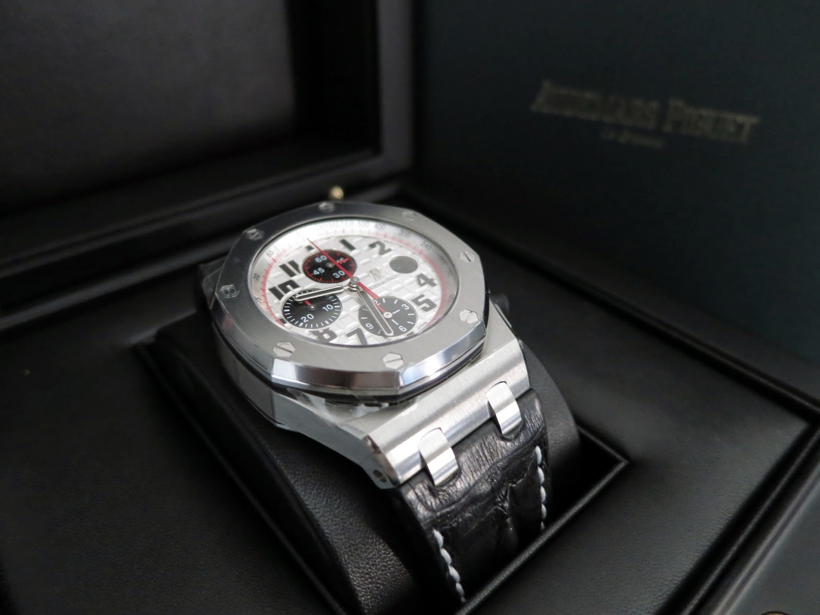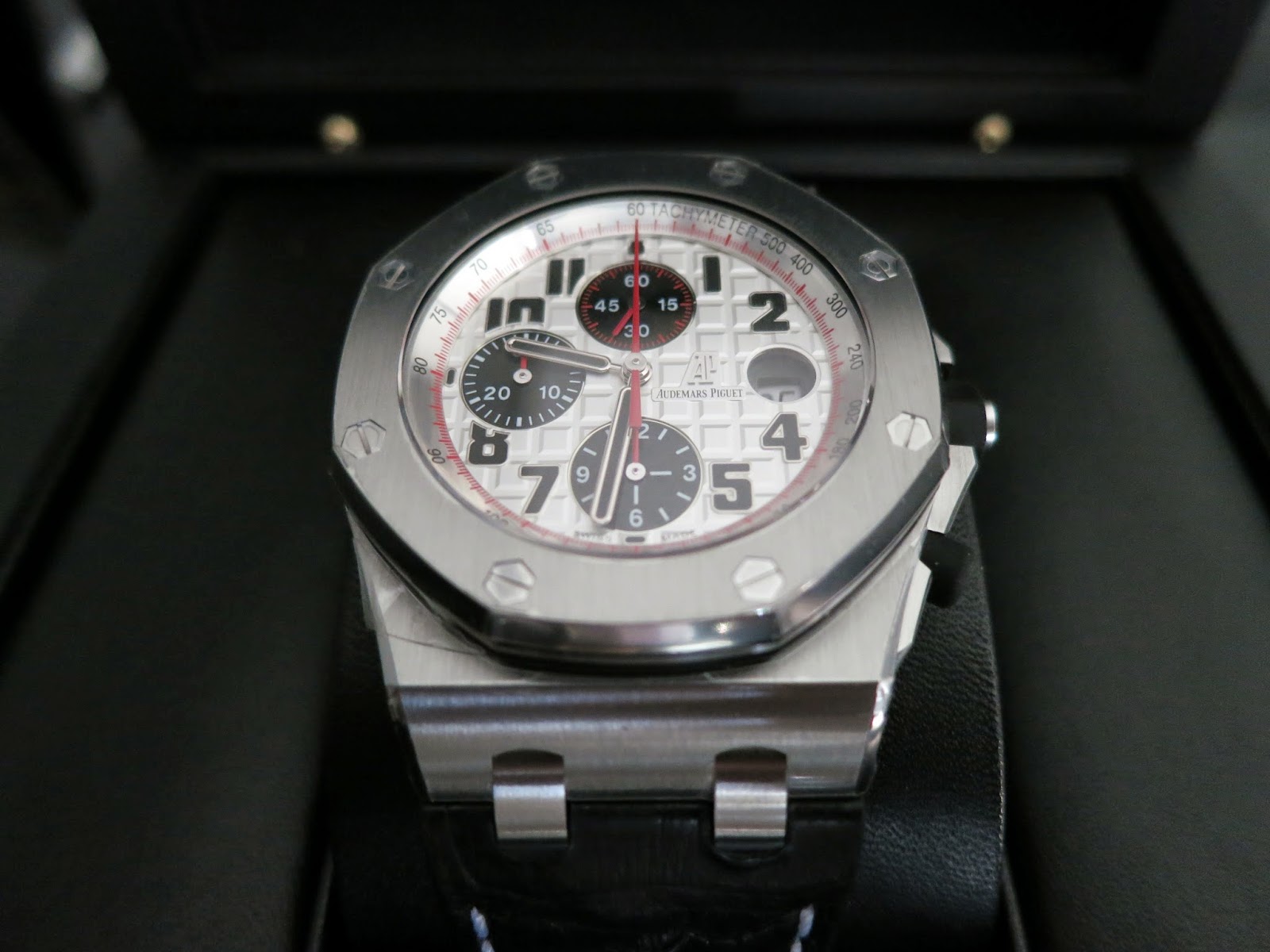 The Royal Oak Offshore Chronograph Panda “I” features a black-and-white dial with stainless steel case. Sporty and iconic, perfect for collectors and active wear.