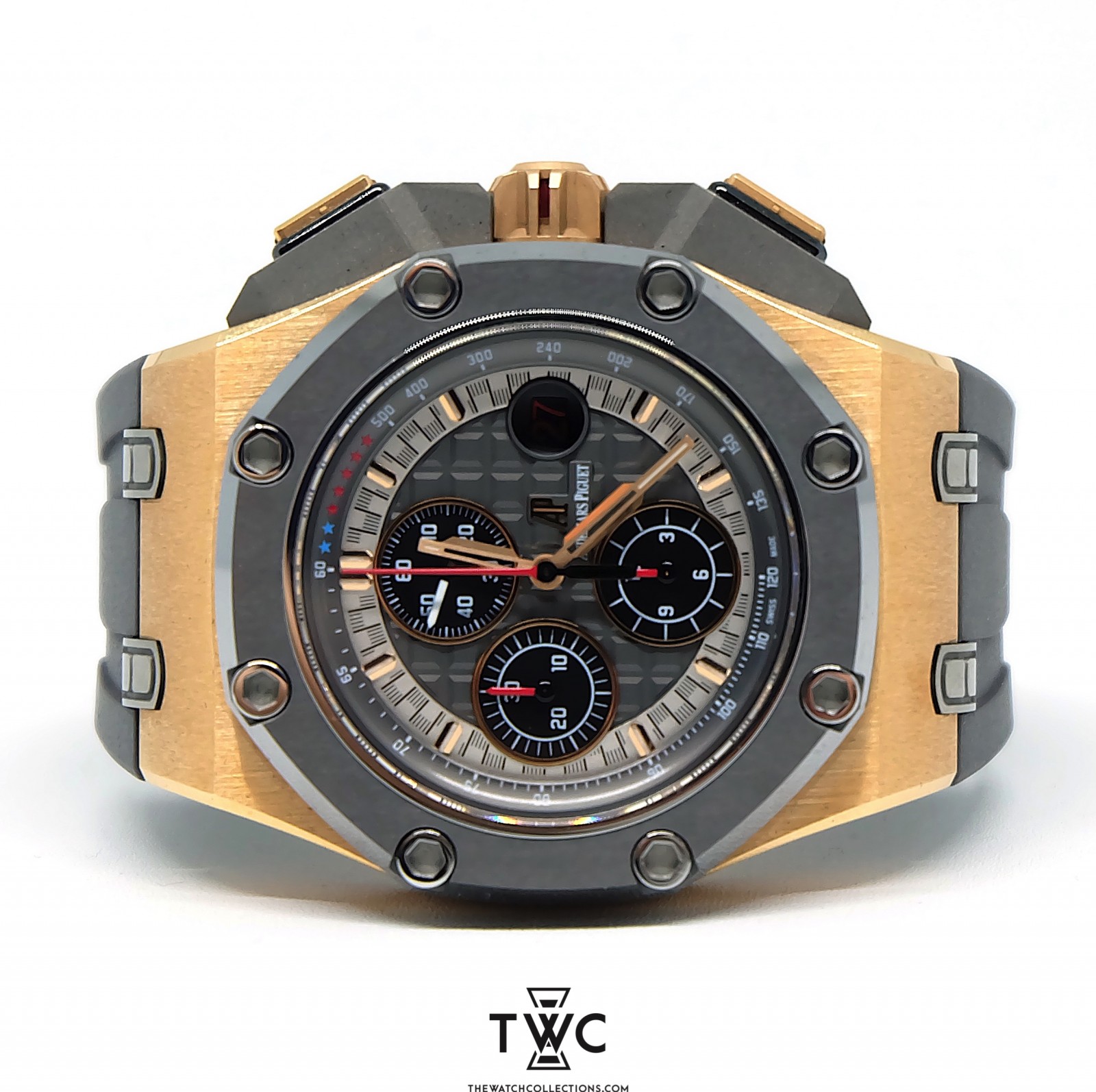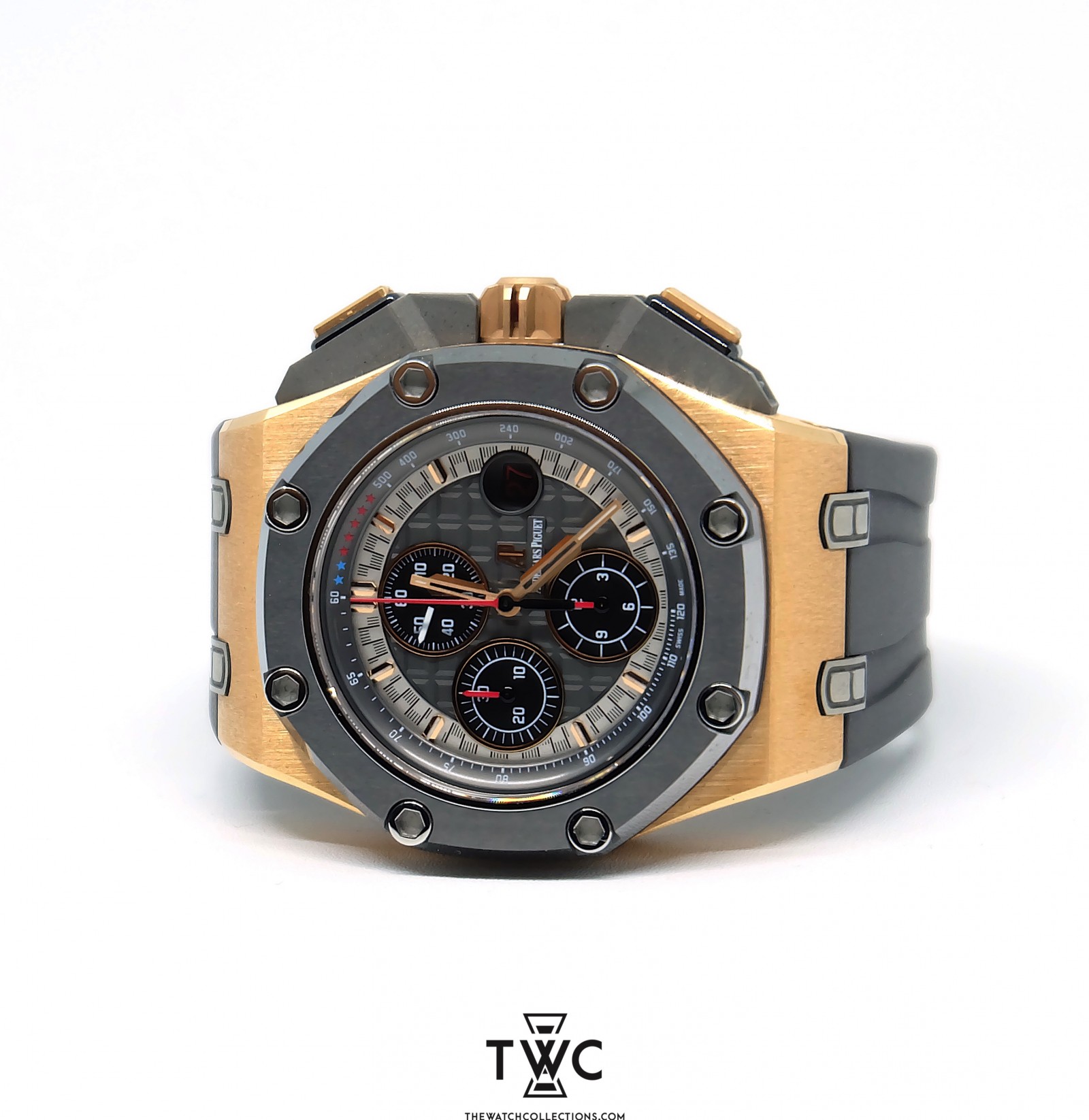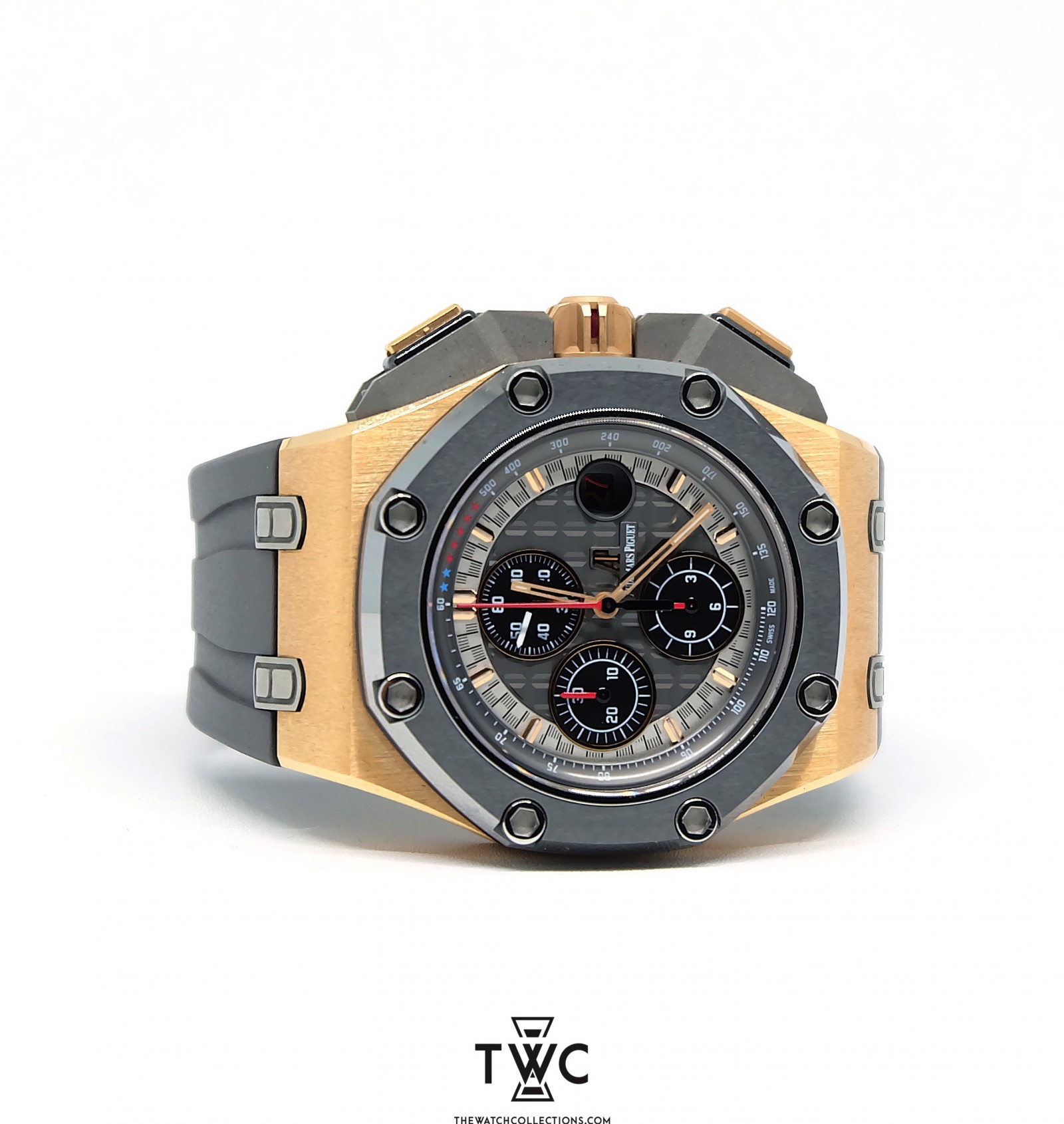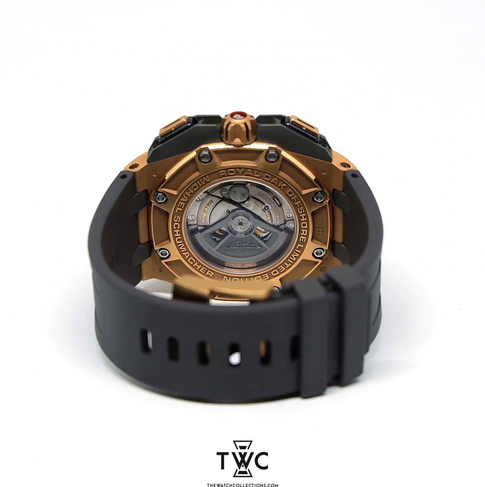 The Audemars Piguet Royal Oak Offshore Michael Schumacher Rose Gold features a rose gold case and exclusive Michael Schumacher edition dial. Perfect for collectors who appreciate sport-luxury timepieces.