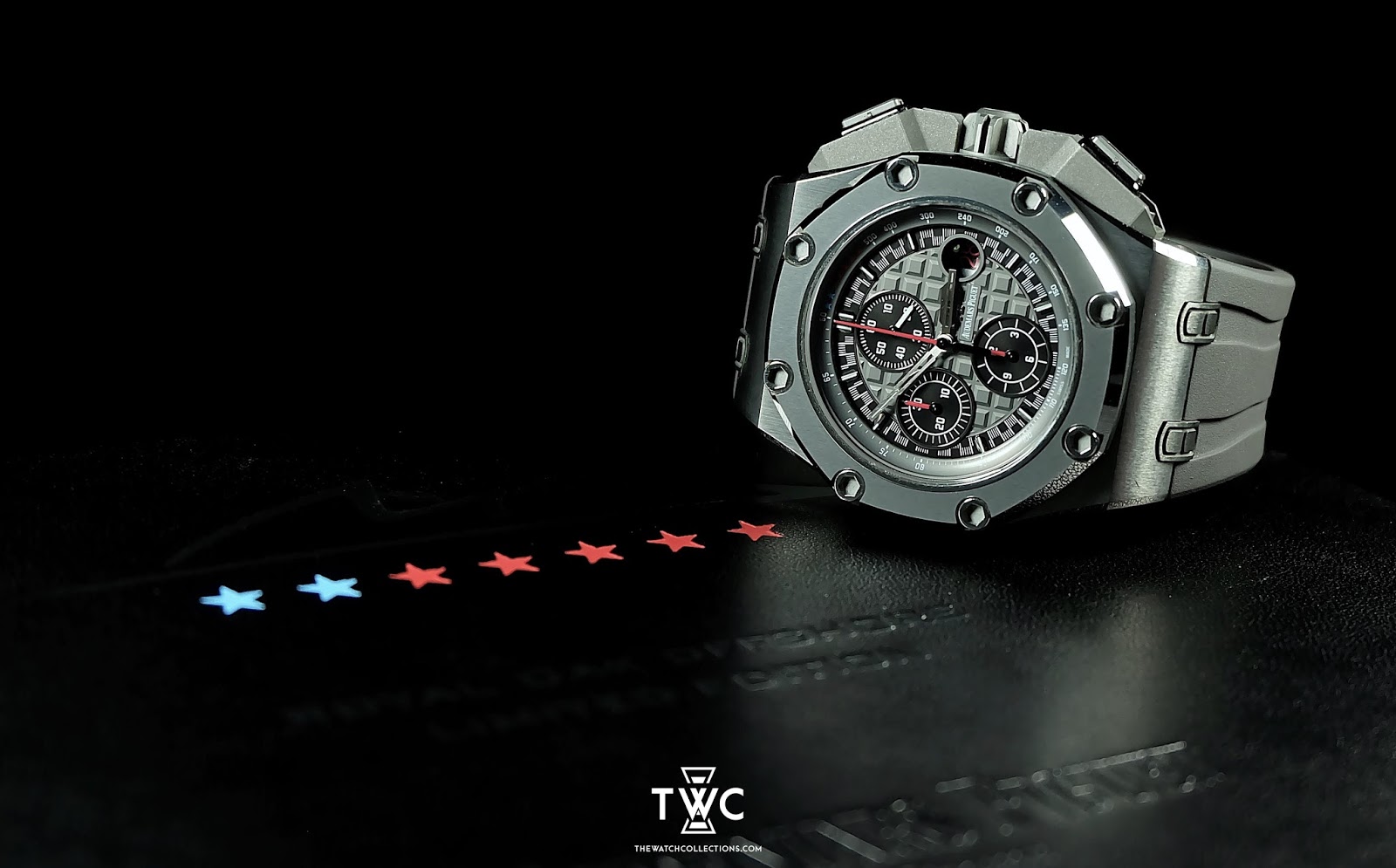 The Royal Oak Offshore Michael Schumacher Titanium showcases a bold, performance-driven design with Audemars Piguet’s technical craftsmanship. Its 44mm titanium case is paired with a ceramic bezel and a black Méga Tapisserie dial featuring prominent Arabic numerals. Powered by the automatic Audemars Piguet 3126/3840 movement with a 50-hour power reserve, this timepiece embodies motorsport-inspired character and mechanical excellence.