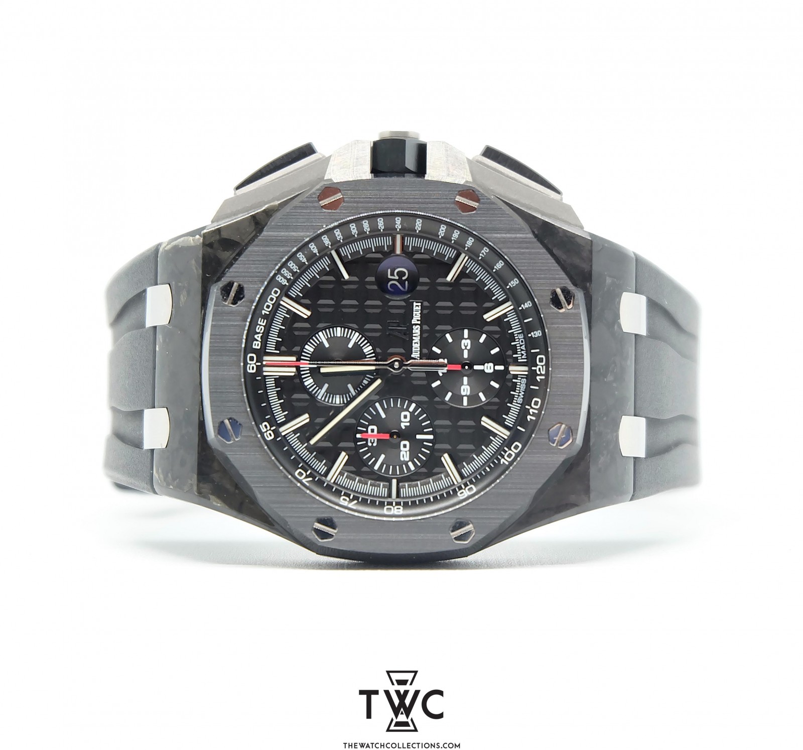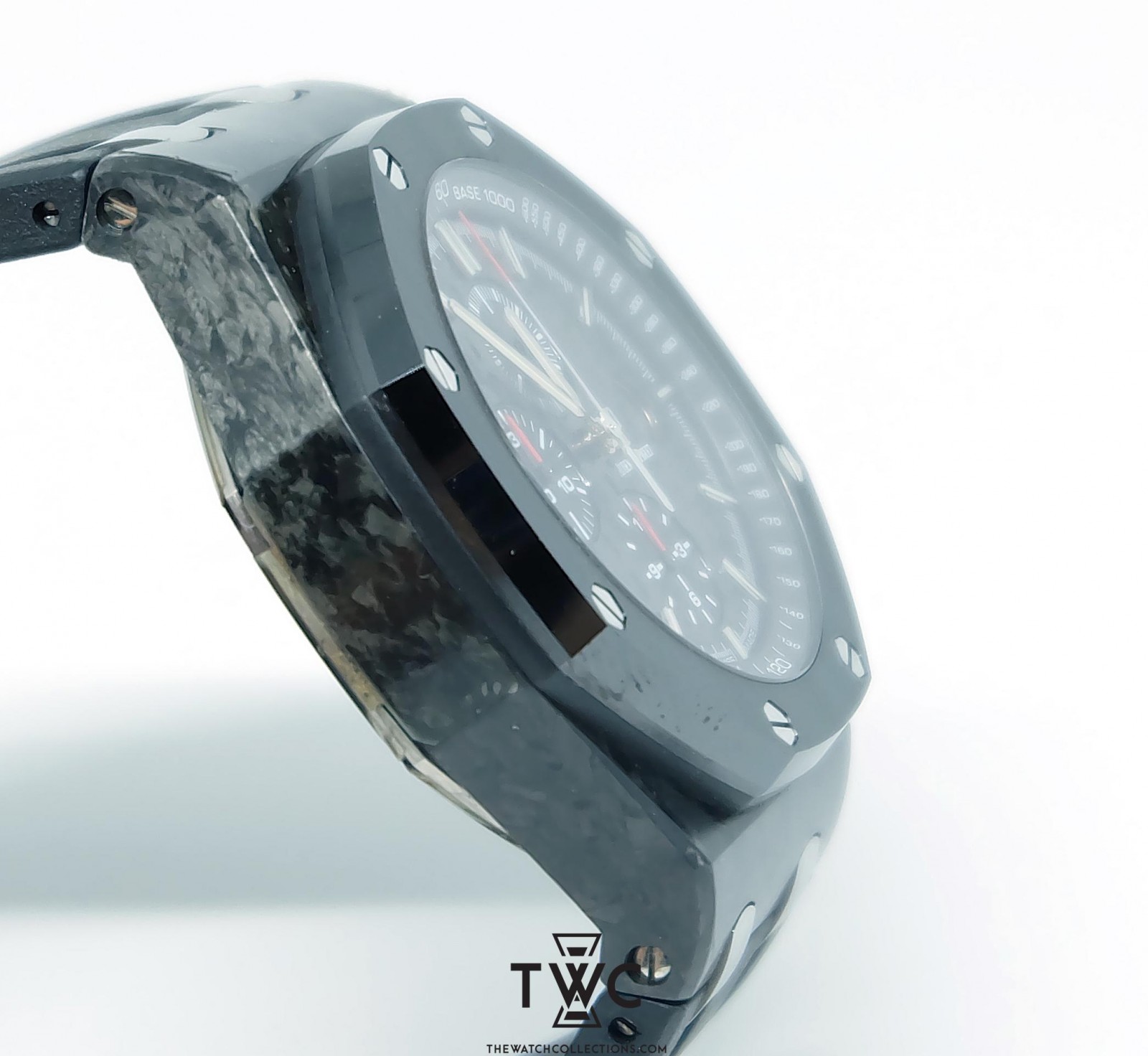The Royal Oak Offshore Novelty Forged Carbon ‘I’ features a forged carbon case with sporty dial. Lightweight, durable, and highlights innovative design.