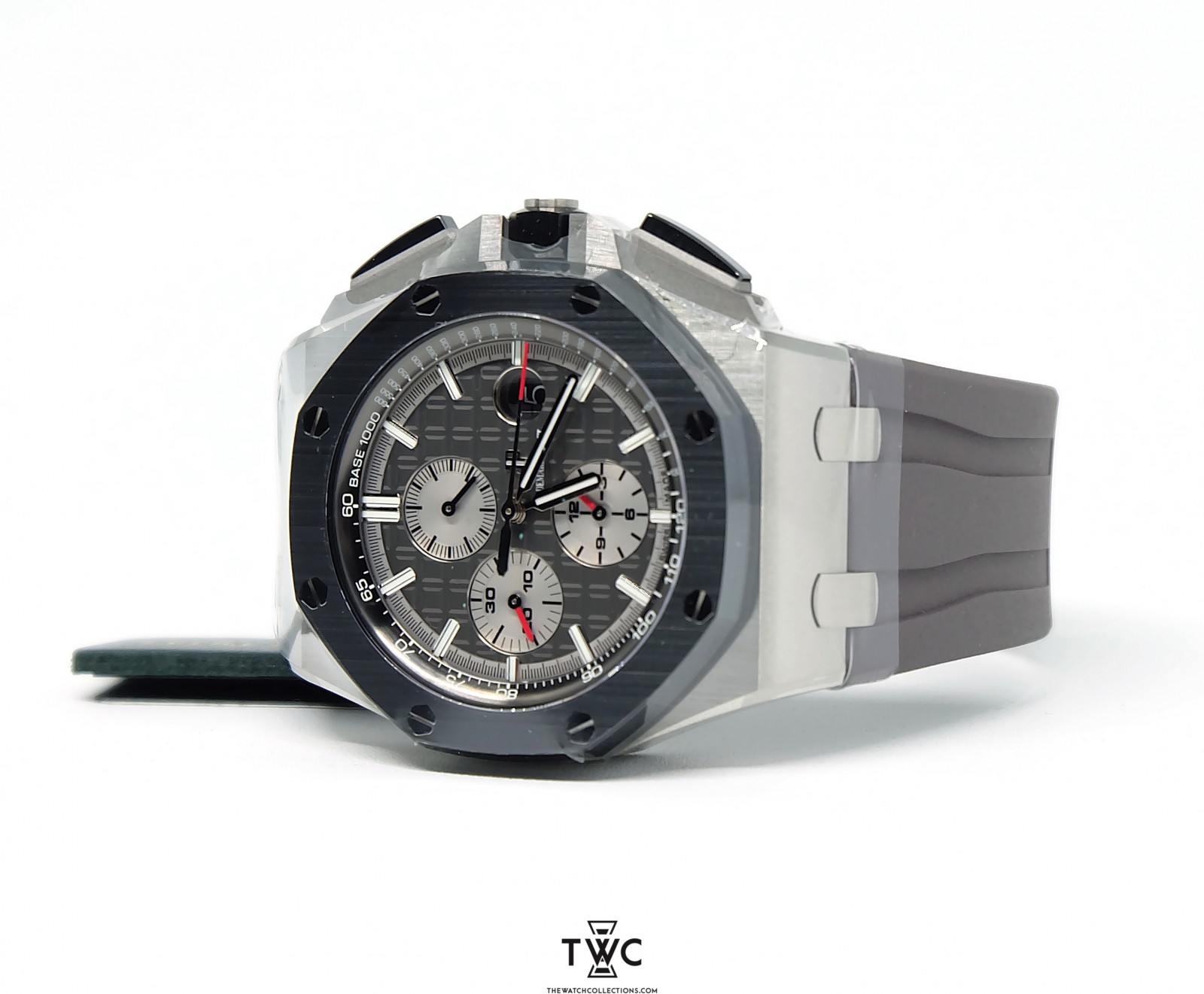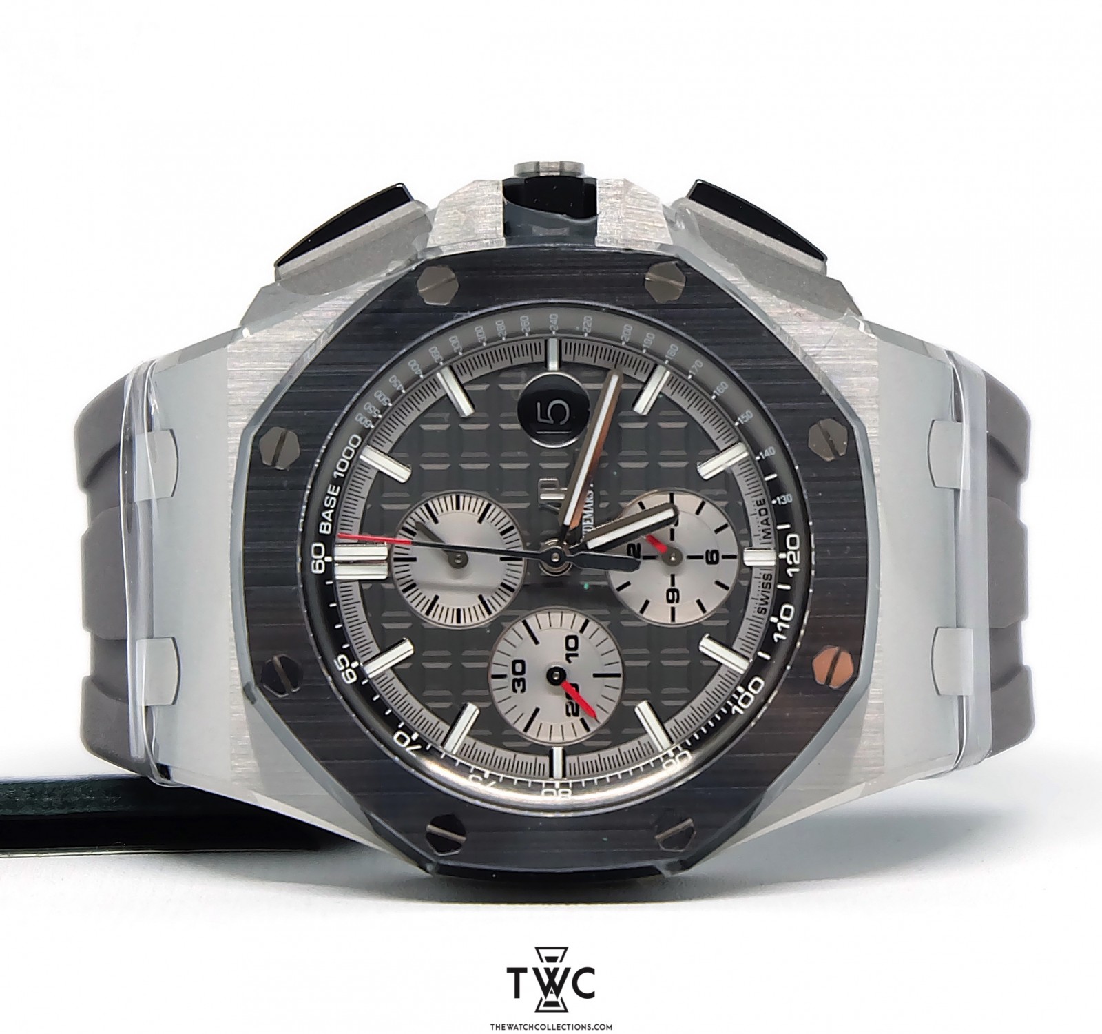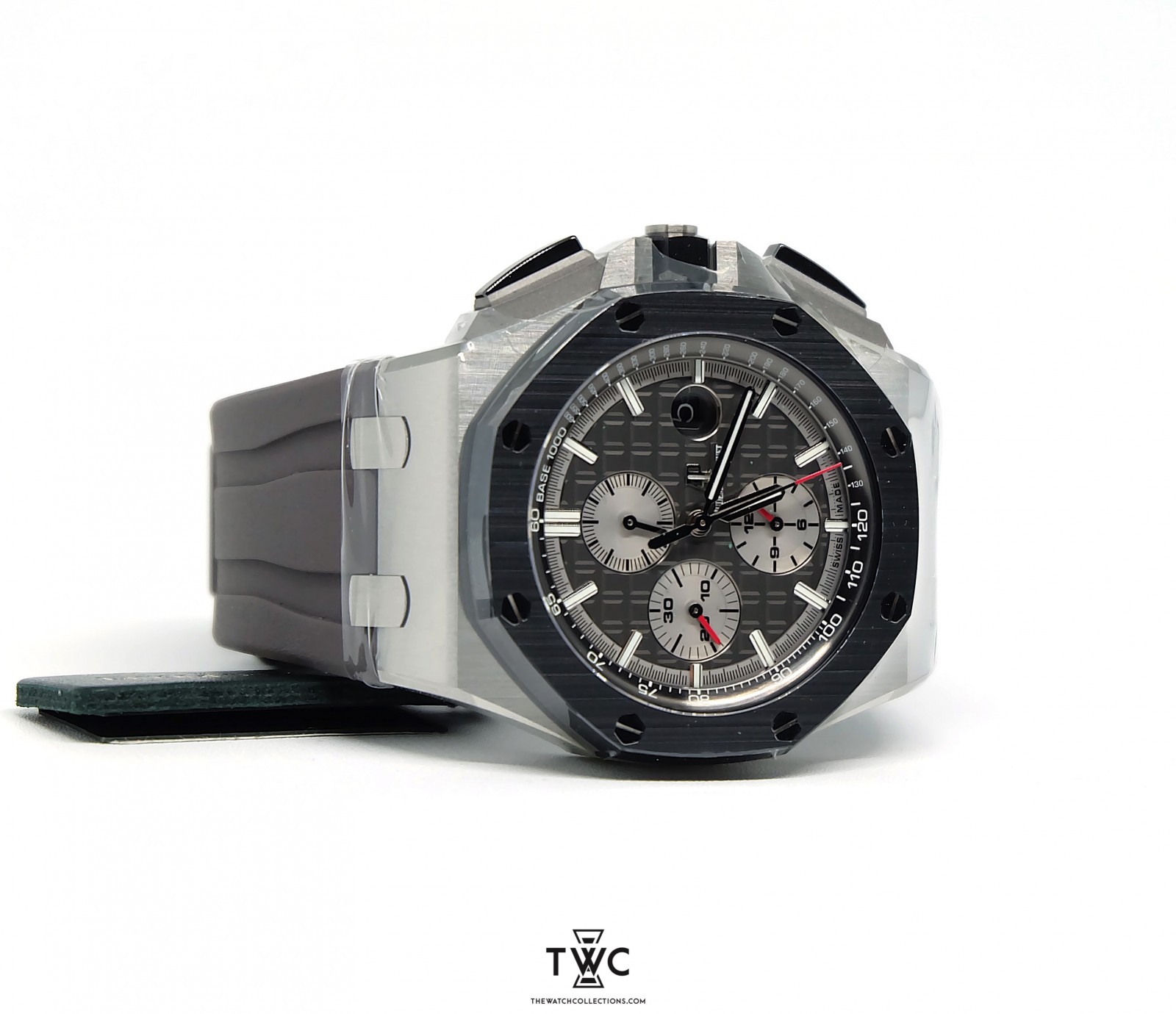 The Royal Oak Offshore Novelty Titanium SIHH 2017 features a lightweight titanium case with new design and rubber strap. It combines innovation with the signature Royal Oak Offshore aesthetics.