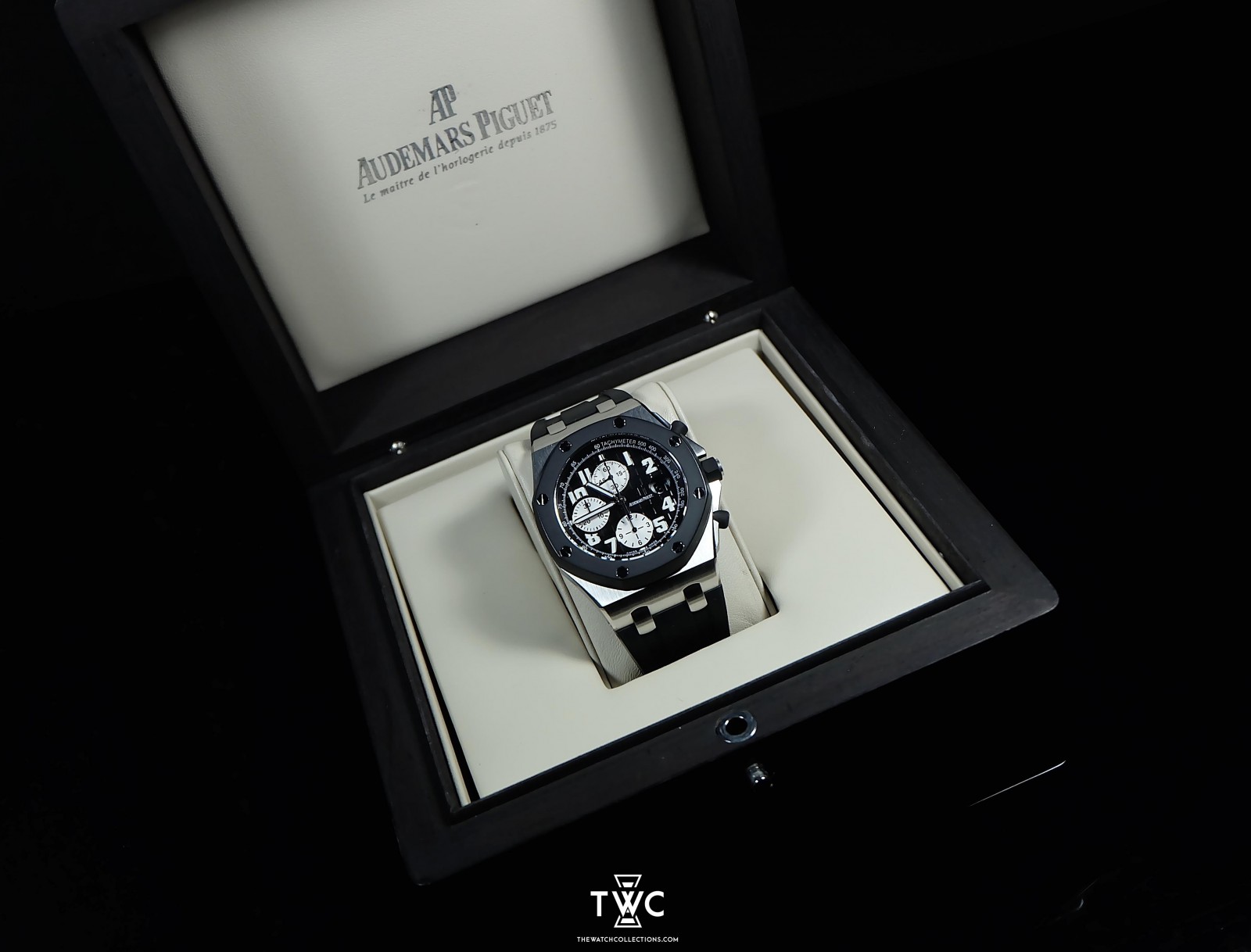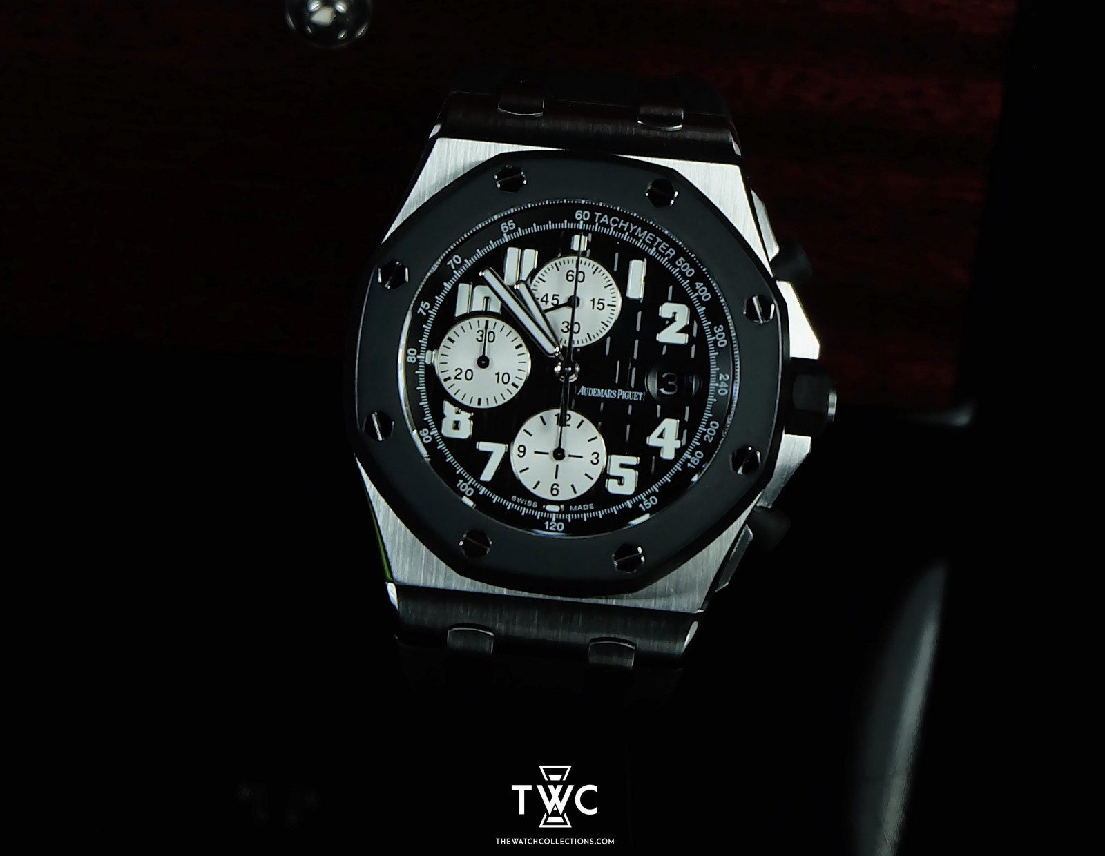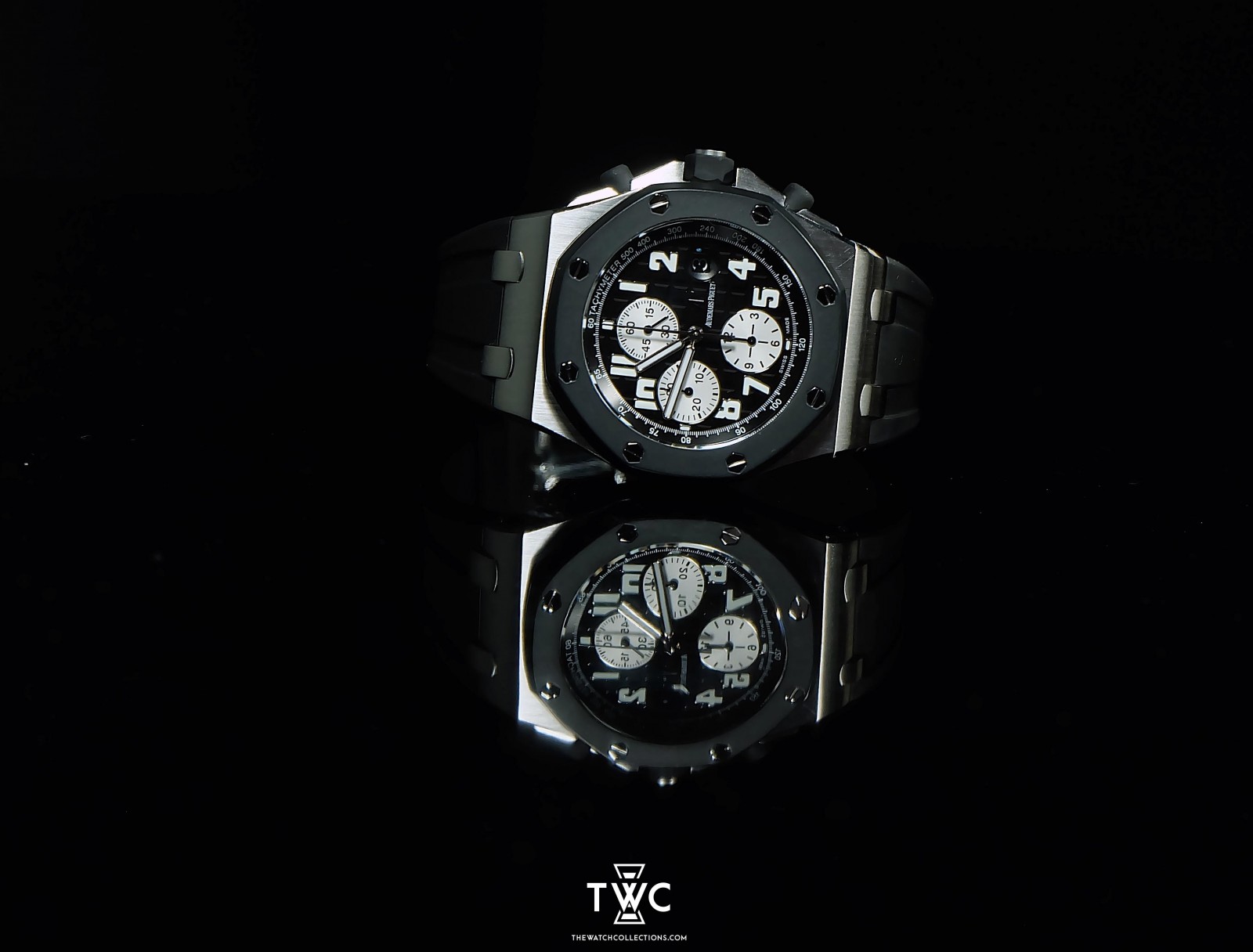 The Royal Oak Offshore Rubberclad delivers Audemars Piguet’s iconic design with a more rugged and sporty approach. The stainless steel case is combined with the signature rubberclad bezel, offering enhanced durability and a bold masculine presence. The black dial with large Arabic numerals reinforces the legendary Offshore identity, making it a compelling choice for collectors seeking a tool-watch character within the Royal Oak lineage.