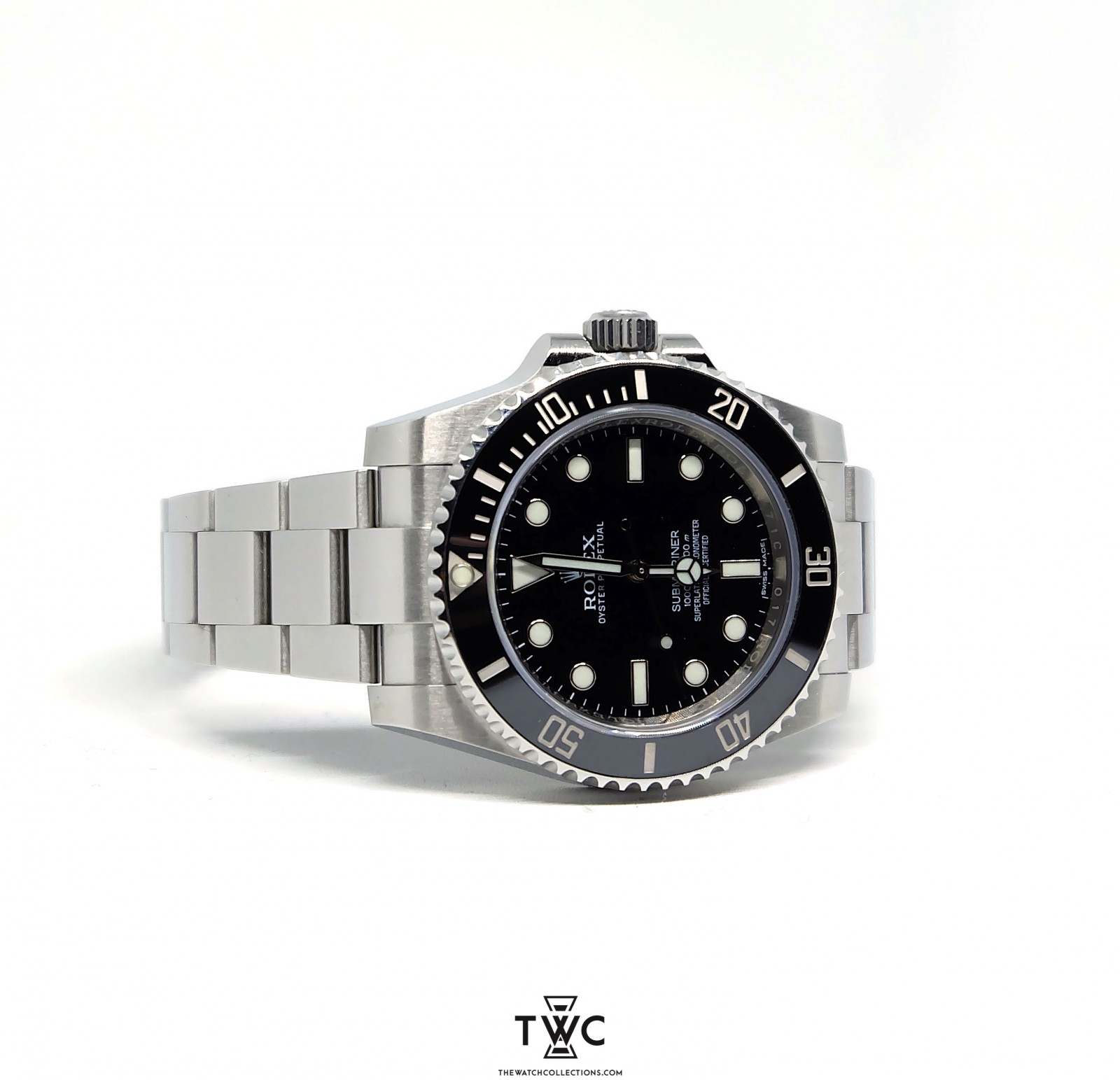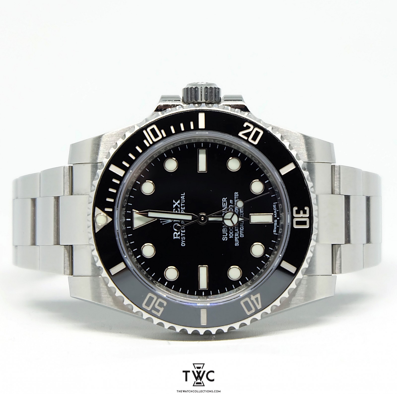 The Rolex Submariner features a stainless steel case with black bezel and black dial. Iconic for diving and a classic collection piece.