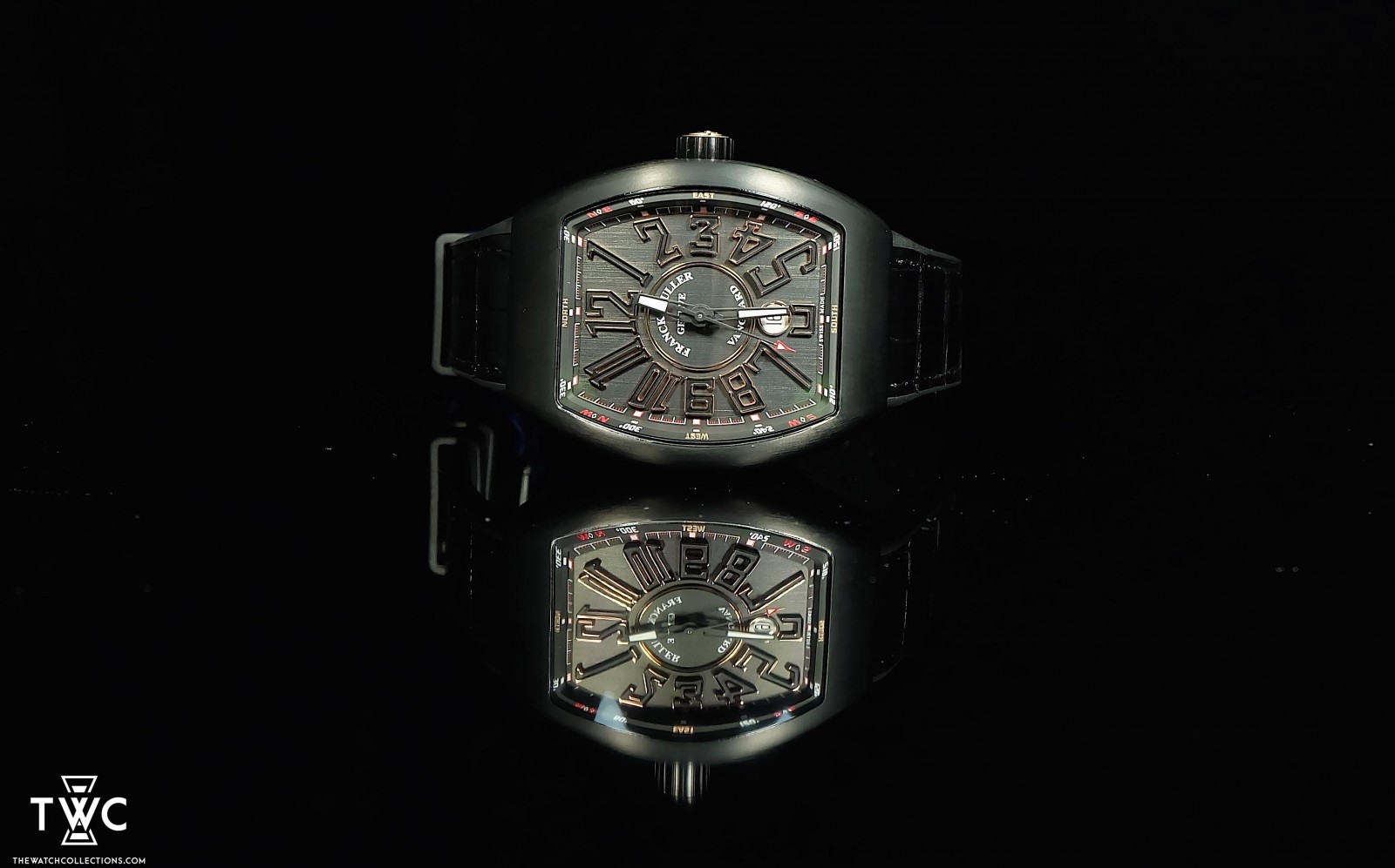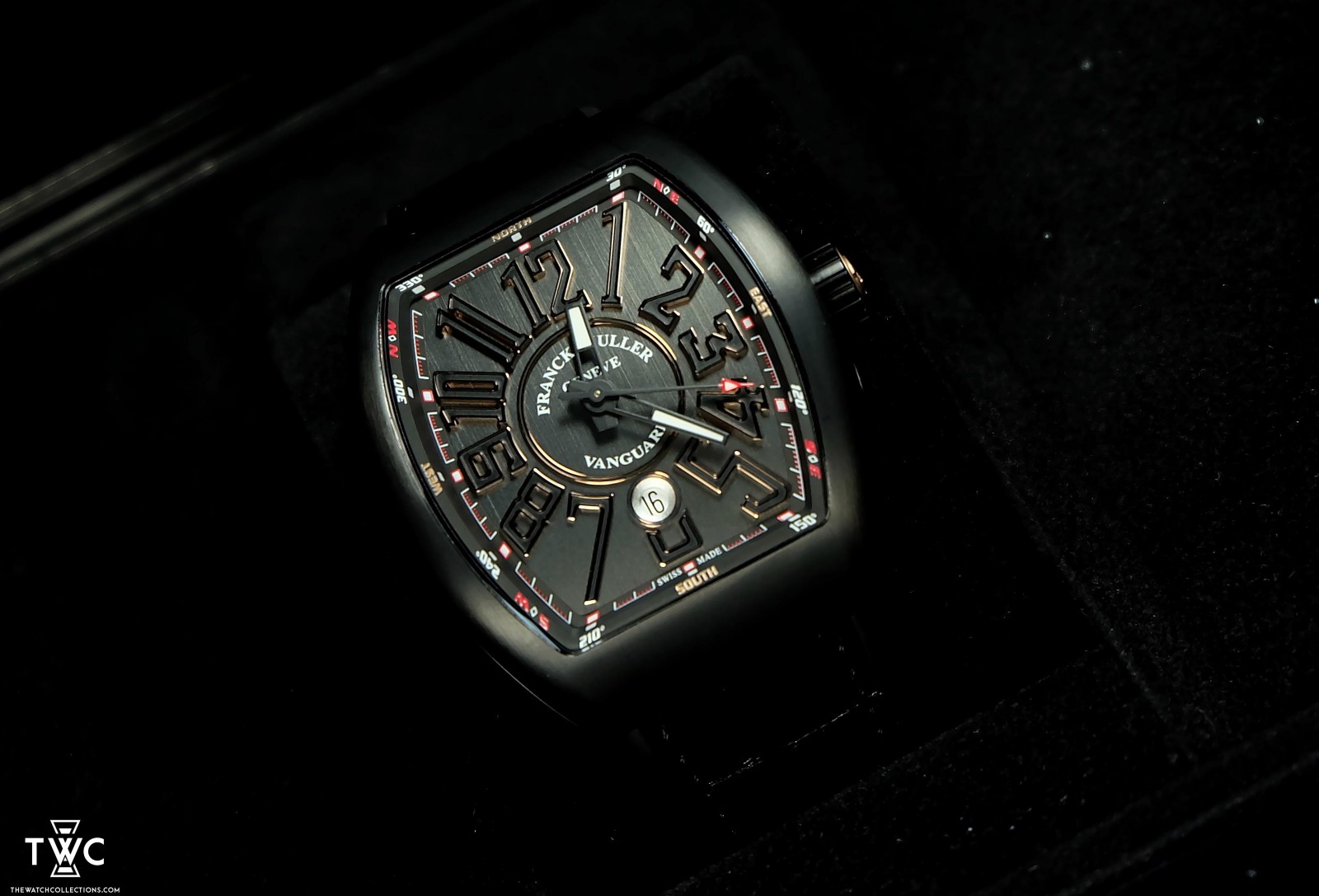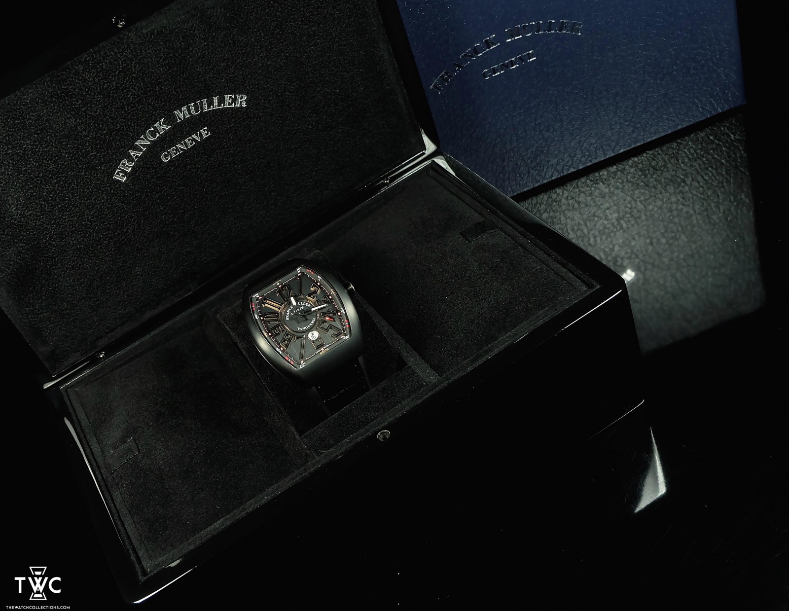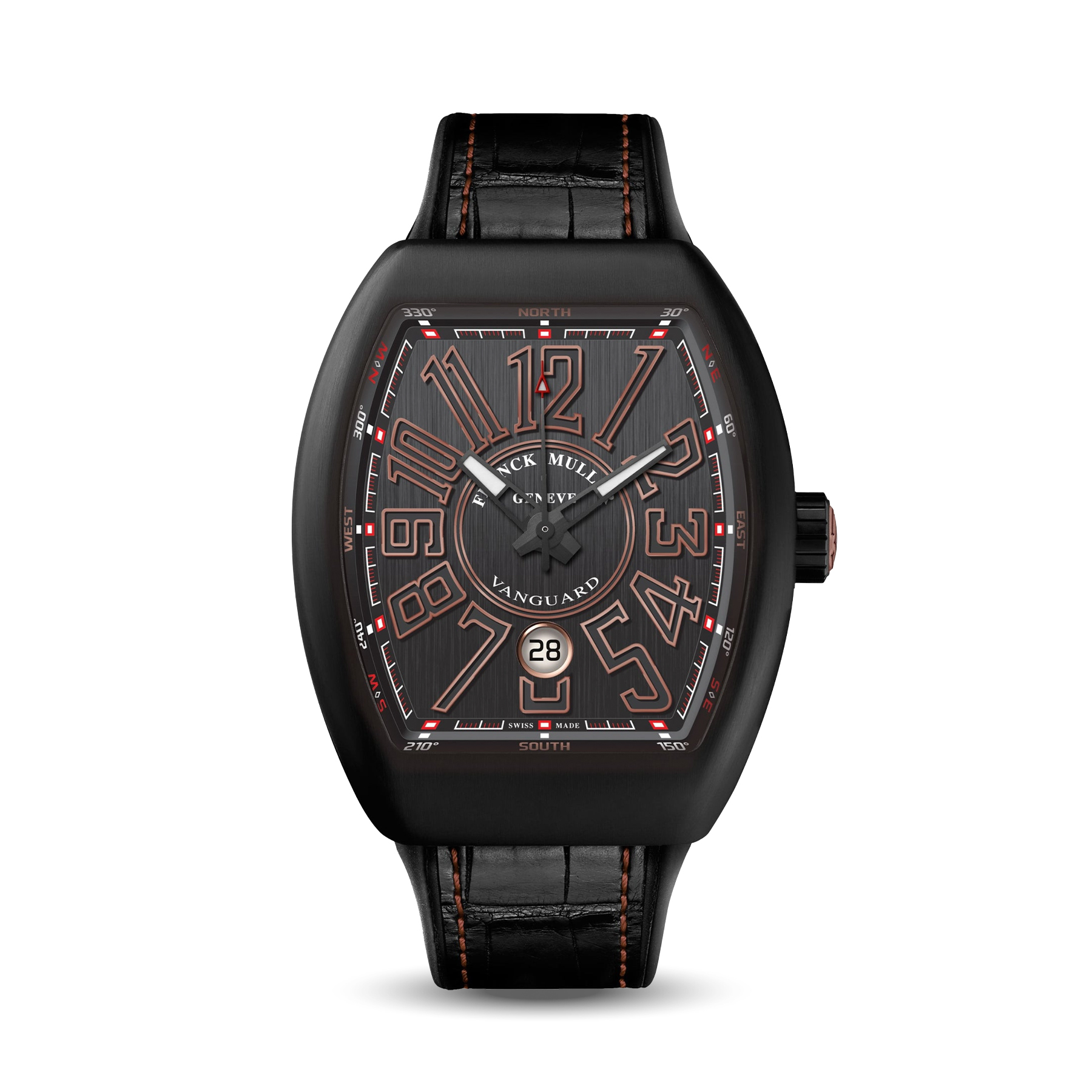 The Franck Muller Vanguard Black Gold features a rose gold case with a black dial and luminous Arabic numerals. Powered by an automatic movement with 55-hour power reserve and 38 jewels, it comes with a black rubber strap and rose gold deployant buckle. This watch is brand new and comes complete with its original set.